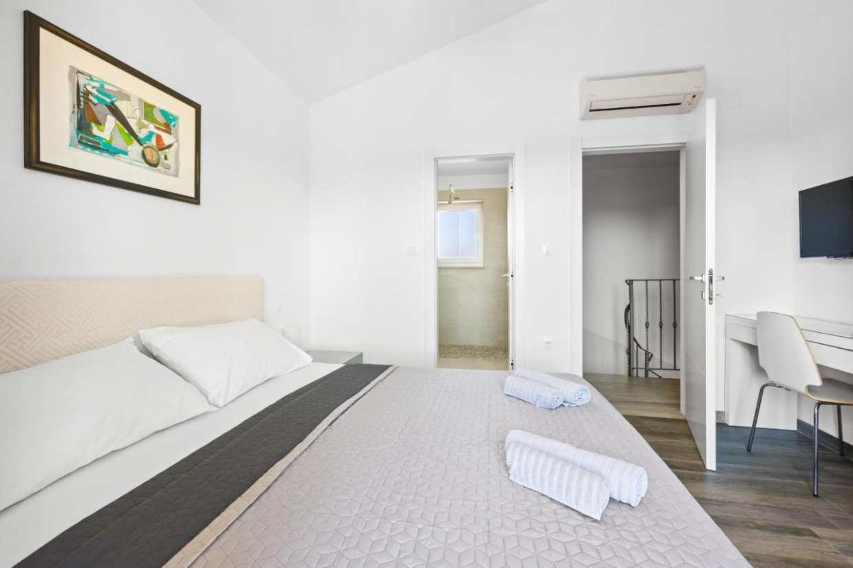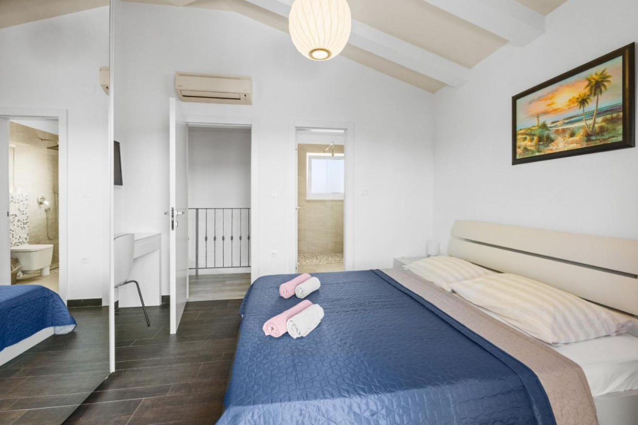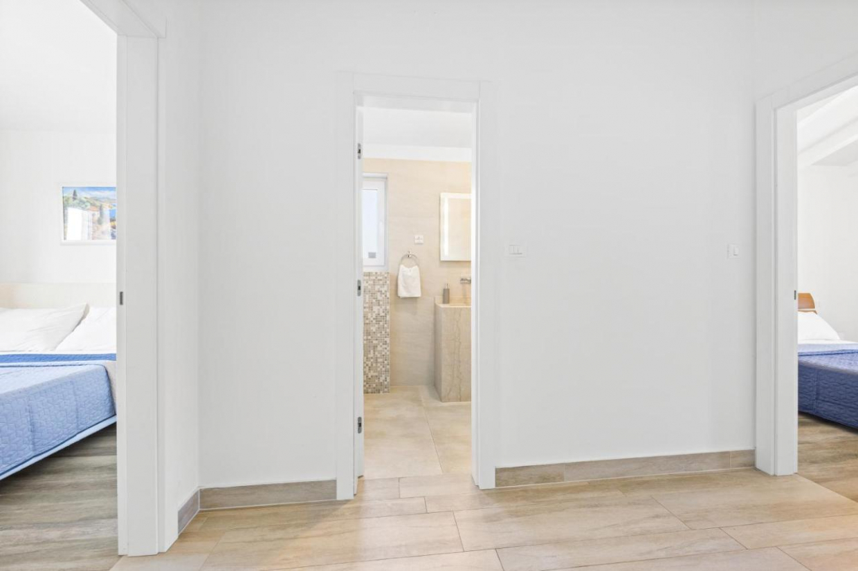 Sted: Vodice Byggeår: 2022 Sjø: 80 m Sentrum: 800 m Innvendig areal: 530 m² Tomtestørrelse: 1000 m² Soverom: 5...