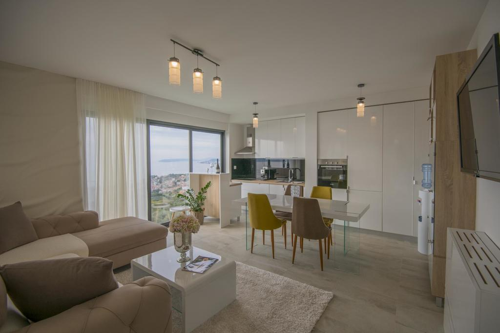 Strategisk beliggende i bjergskråningen føles det næsten som en del af naturen. I dette toetagers kompleks kan du nyde solopgangen over Split-bugten og de omkringliggende øer hver morgen.