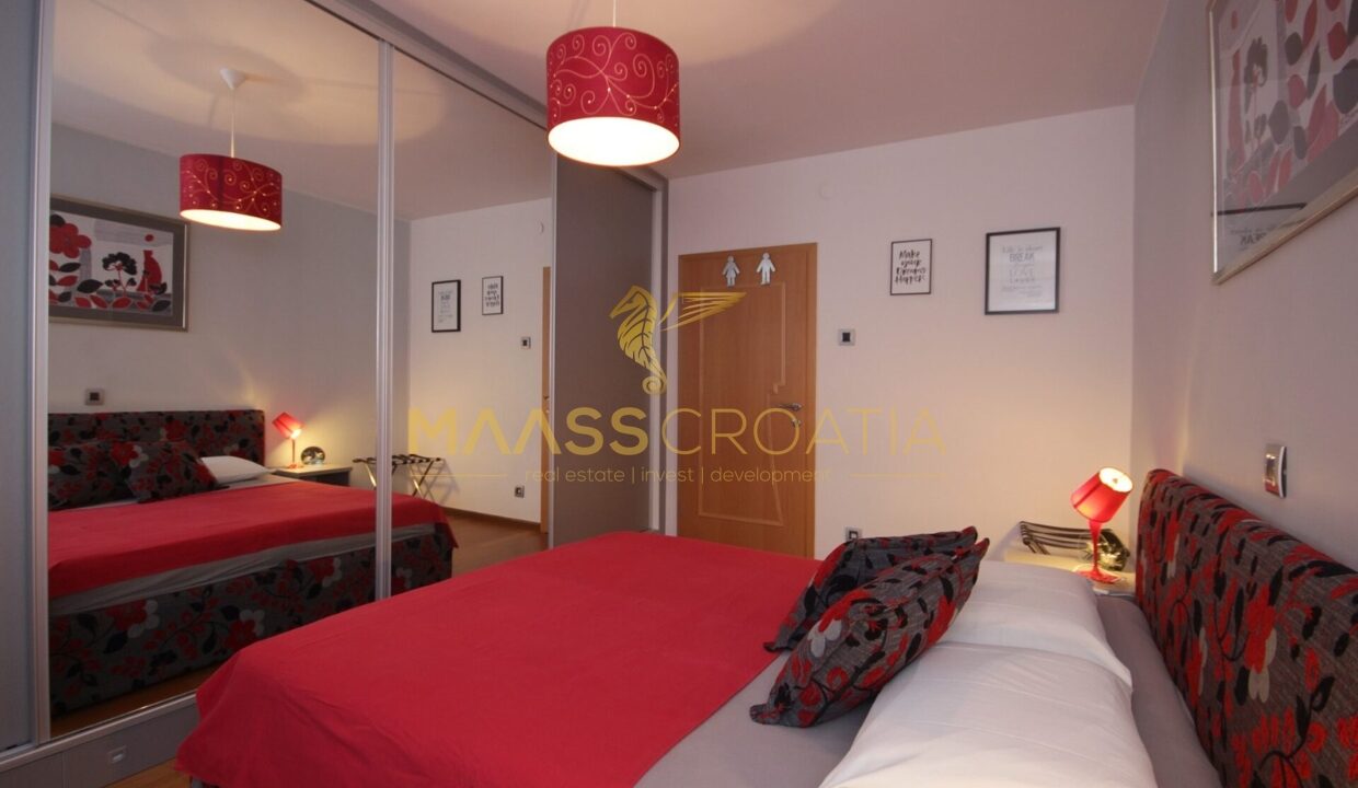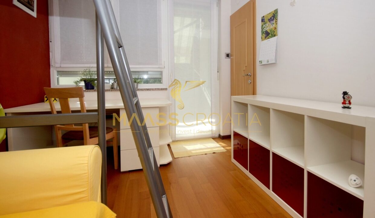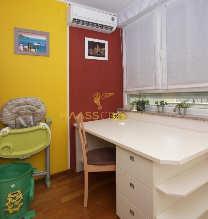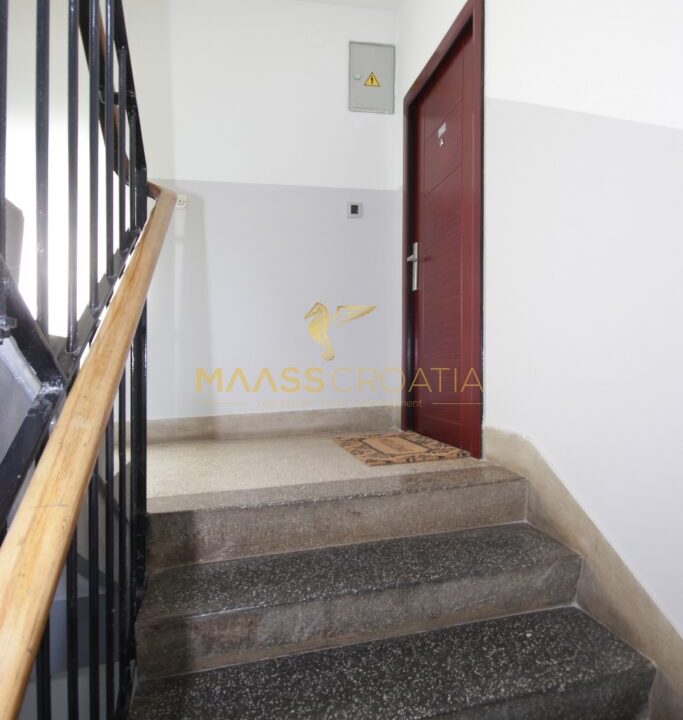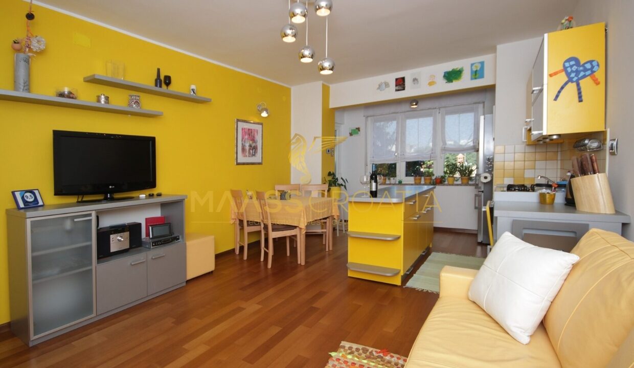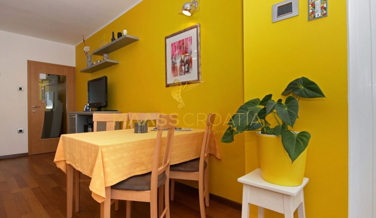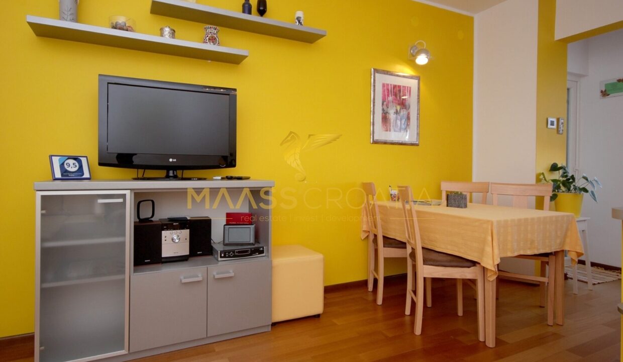 Denne lyse og velindrettede lejlighed på 62 kvadratmeter ligger på anden sal i en velholdt bygning i Pula, kun omkring to kilometer fra havet.