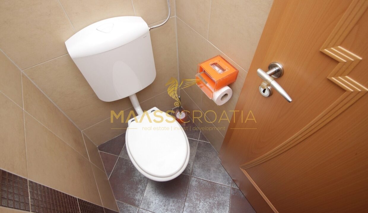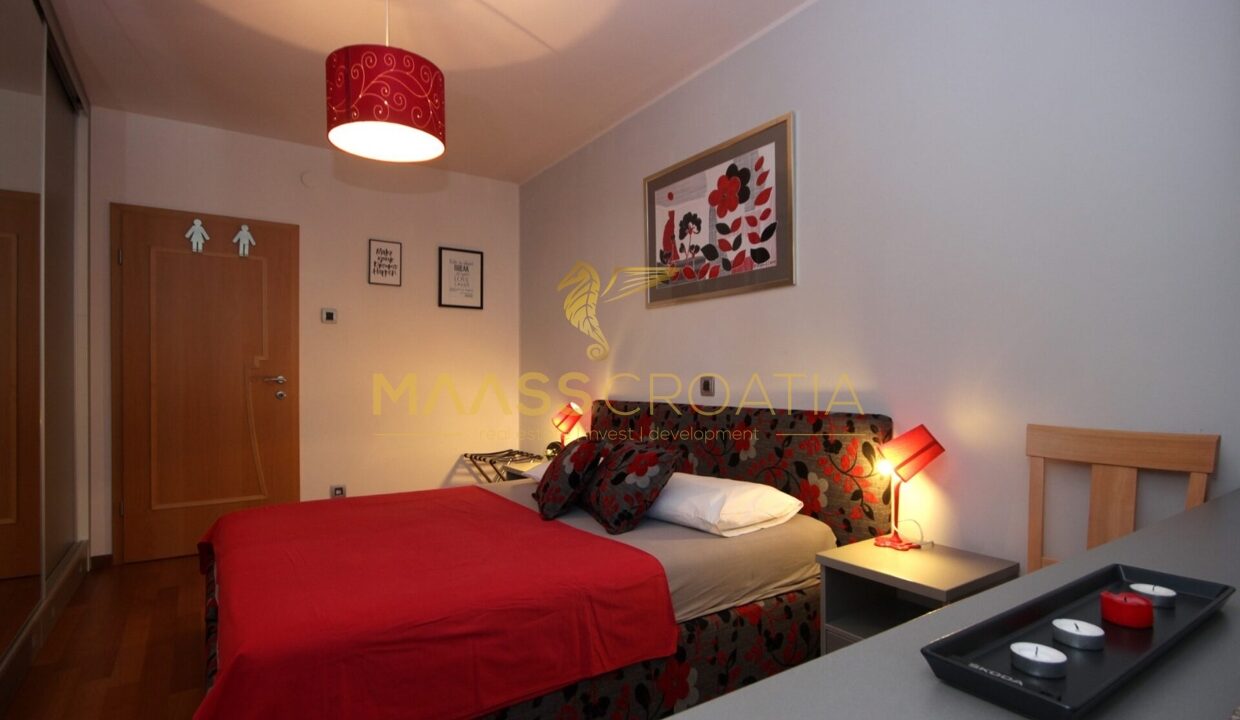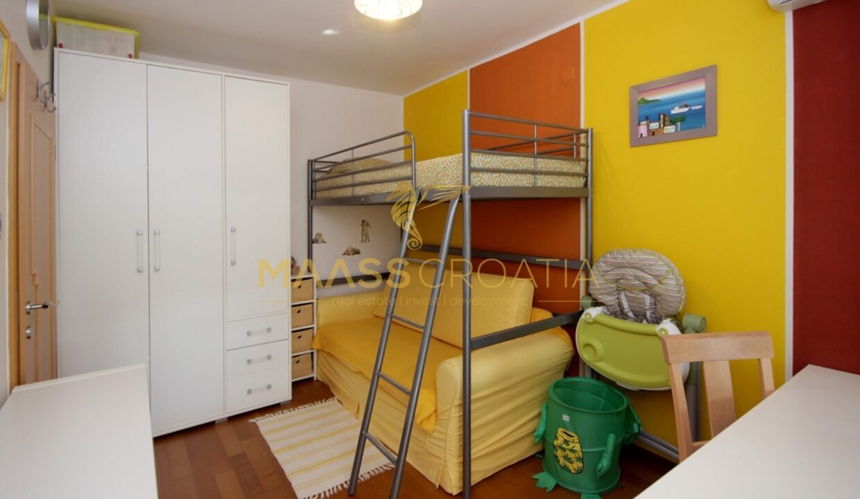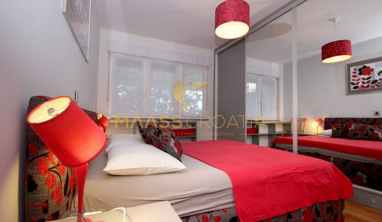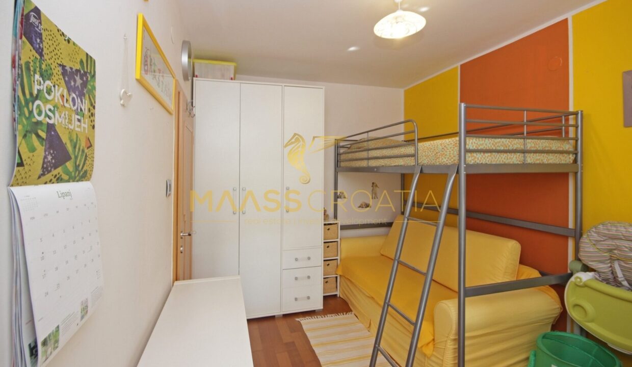 Denne lyse og velindrettede lejlighed på 62 kvadratmeter ligger på anden sal i en velholdt bygning i Pula, kun omkring to kilometer fra havet.