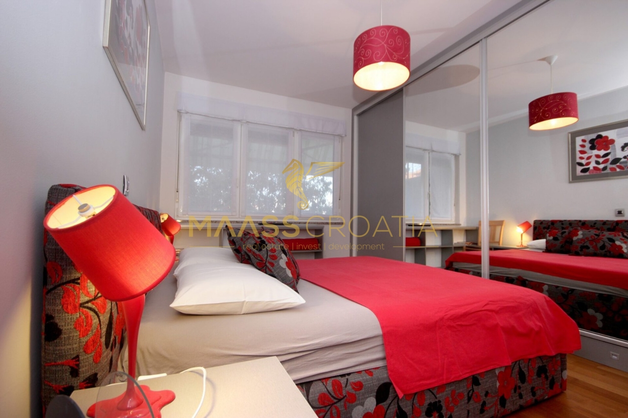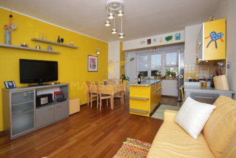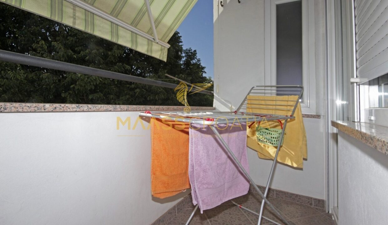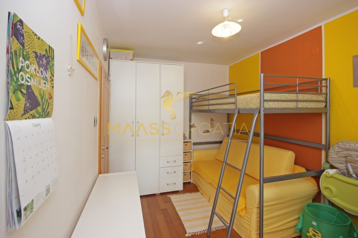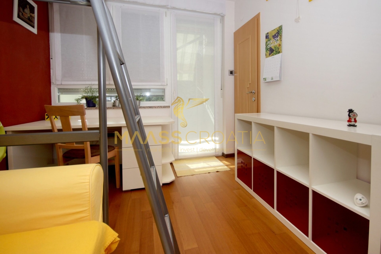 Denne lyse og velindrettede lejlighed på 62 kvadratmeter ligger på anden sal i en velholdt bygning i Pula, kun omkring to kilometer fra havet.