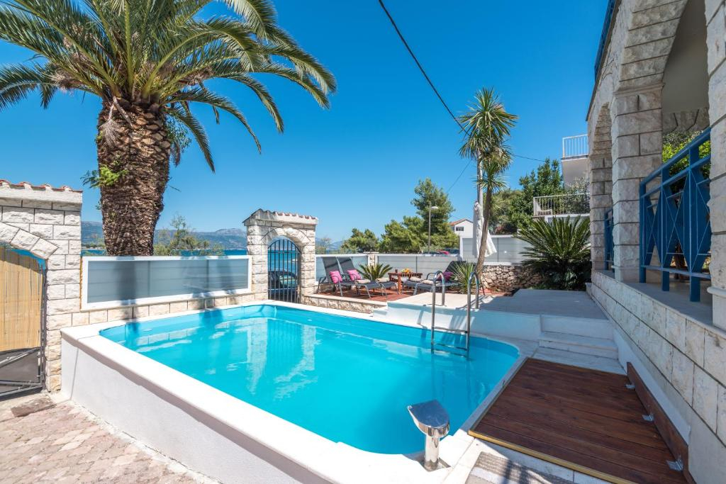 Ejendom med to bygninger i istrisk stil, afsondret beliggenhed, omgivet af grønne områder, med pool og sauna