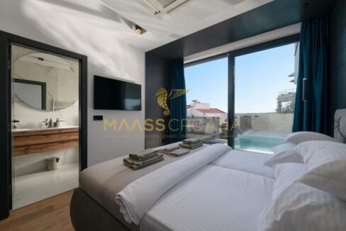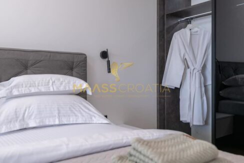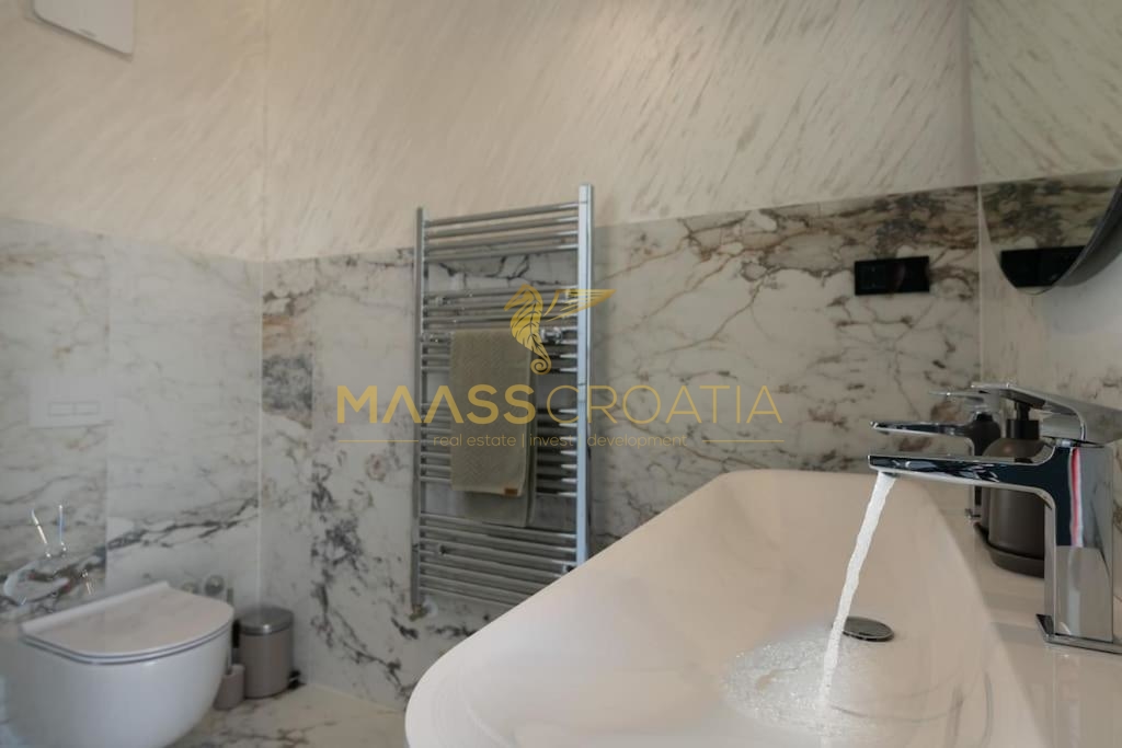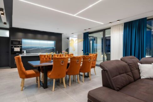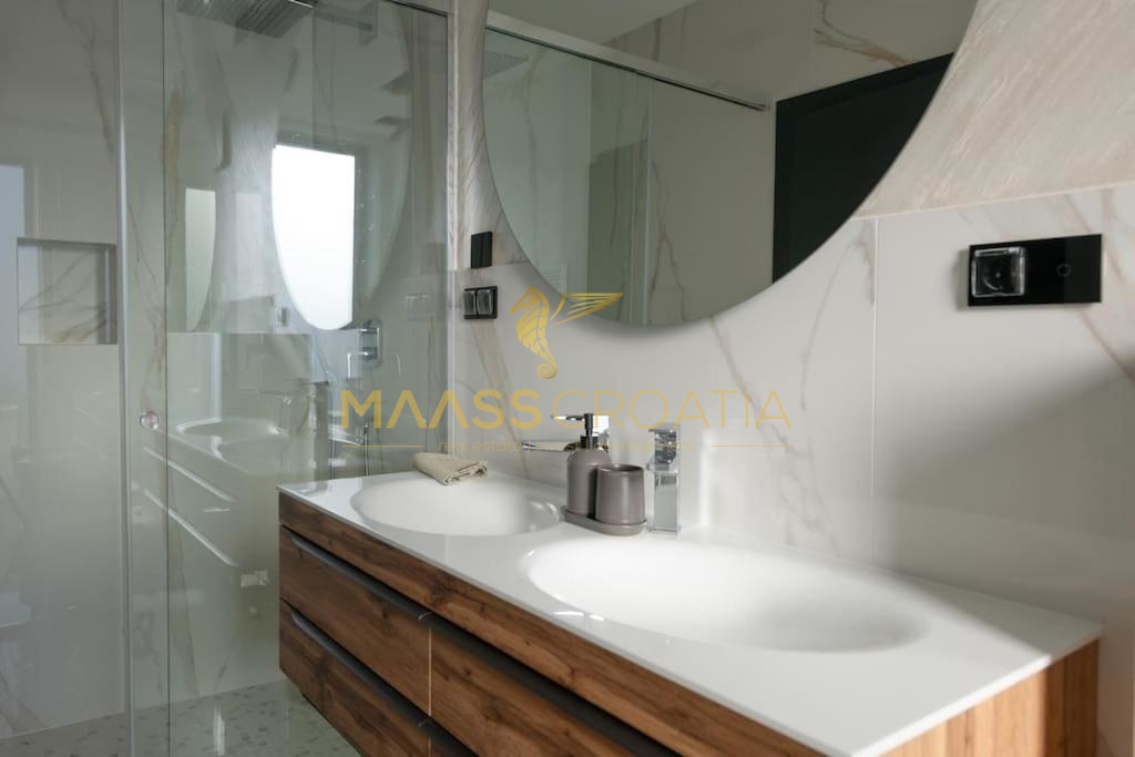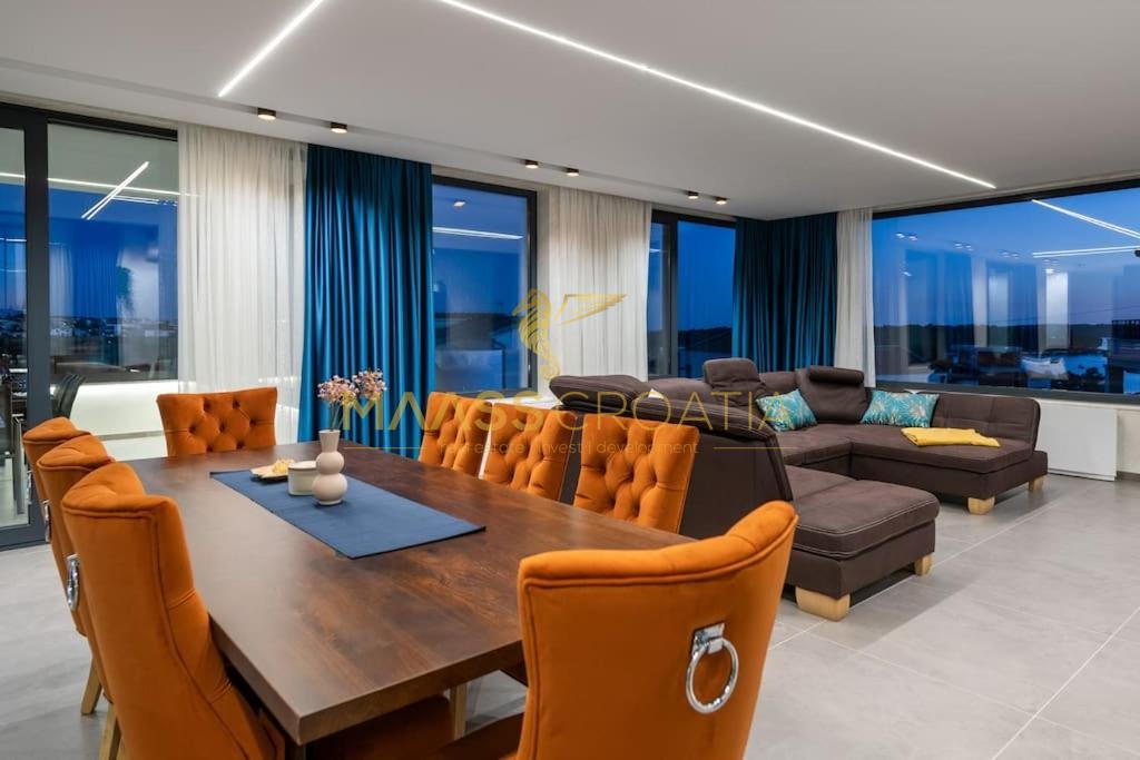 Denne smukke moderne villa har en fremragende beliggenhed, kun 2 km fra byens centrum og 300 m fra havet og den berømte Mukalba strand i Medulin.