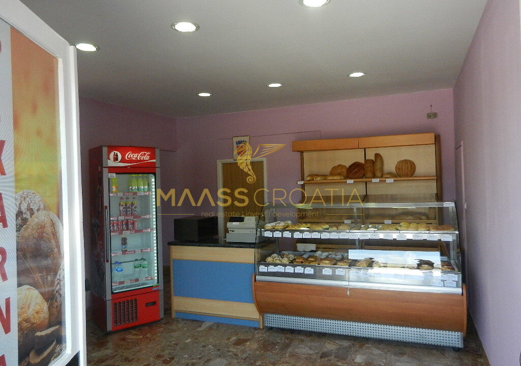 I stueplan er der fem erhvervslokaler på i alt 398,25 m2 med to butikker, bager, salgshal og buffet, og alt er sat op og i drift.