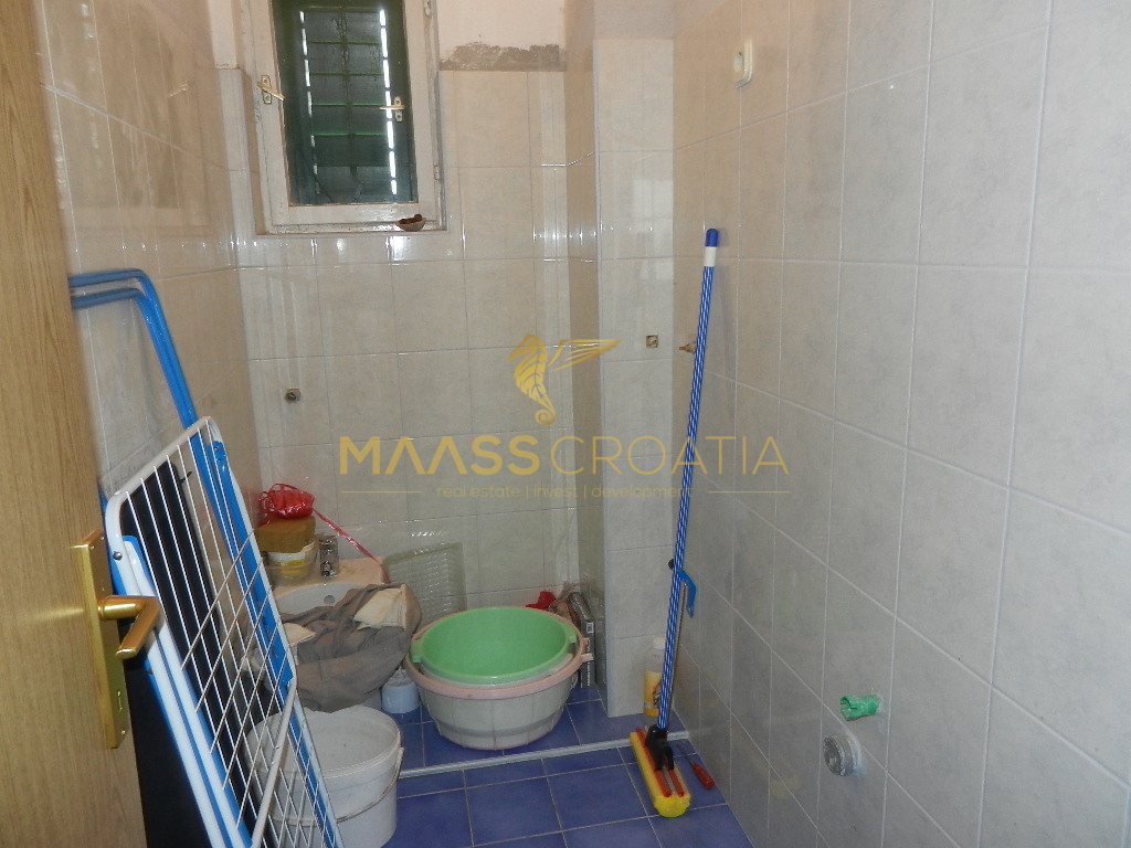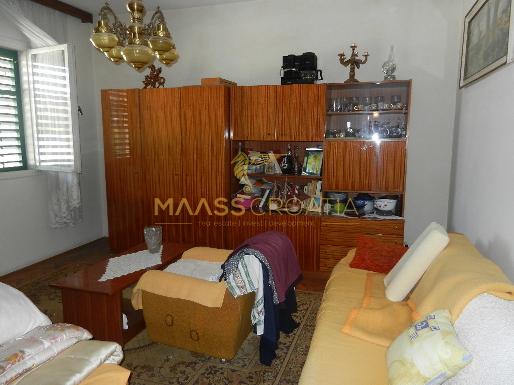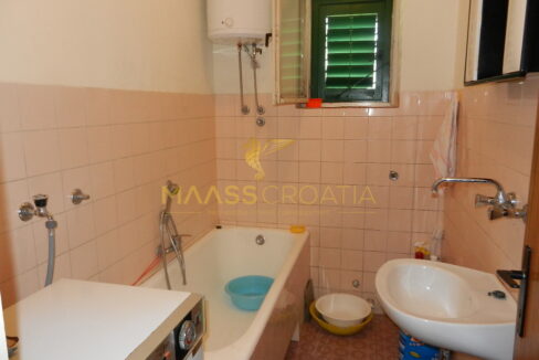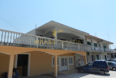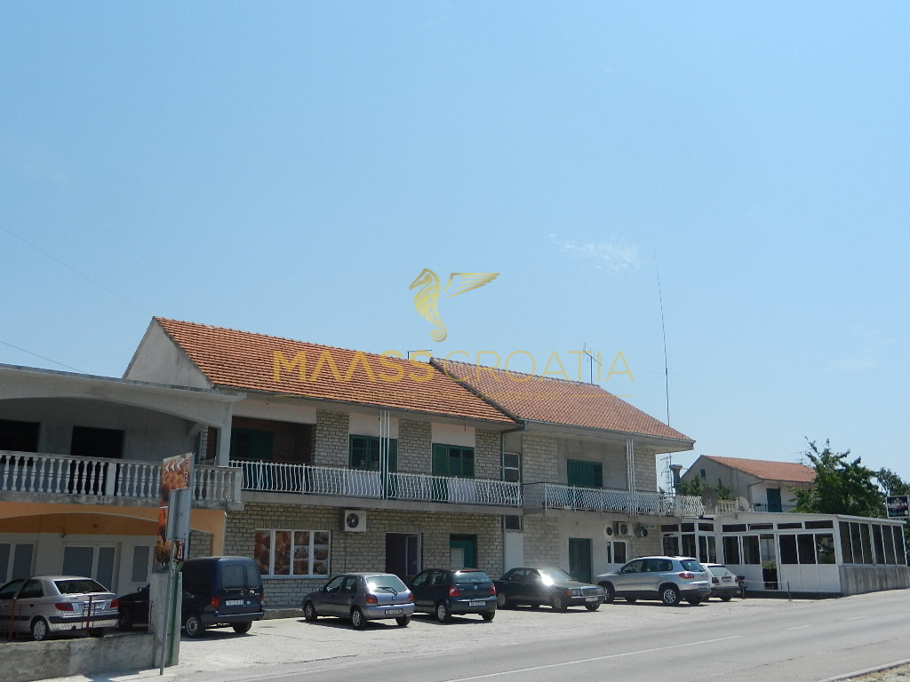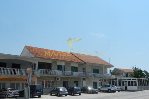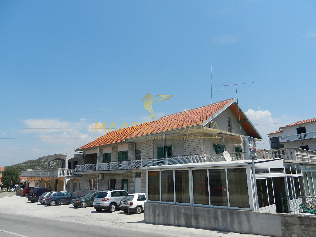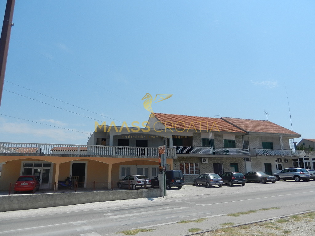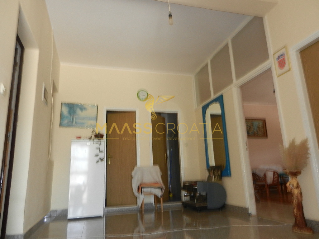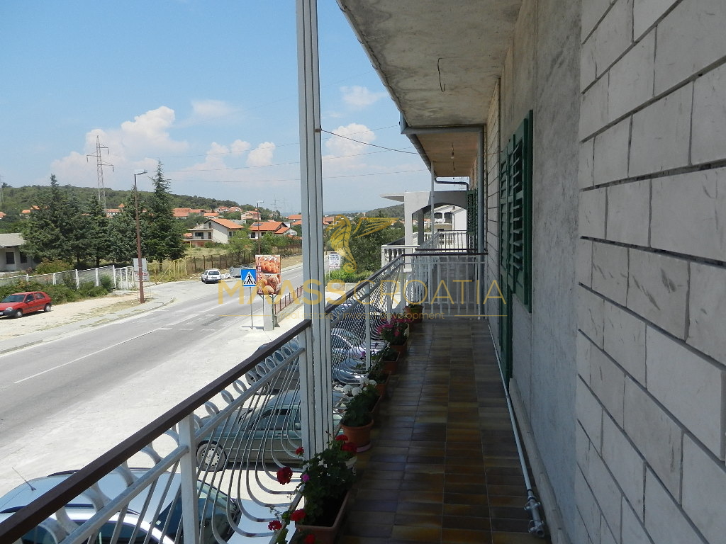 Den indvendige trappe fører til 1. sal, hvor der er tre boligenheder på i alt 241,49 m2. Lejlighed S1 indrettet og indflytningsklar med et areal på 100,86 m2, bestående af køkken med spisestue og stue som helhed, entre, badeværelse, toilet og 4 soveværelser + altan på 21,31 m2. Lejlighed S2 indrettet og indflytningsklar med et areal på 68,63 m2, bestående af køkken med spisestue og stue som helhed med udgang til terrasse på 70,92 m2, depotrum, soveværelse og badeværelse samt en altan på 10,92 m2. Lejlighed S3 med et areal på 72 m2 installeret i skalkonstruktion med del af PVC-tømrer + en stor terrasse på 72 m2 og en loggia på 28 m2. med sætning. Grunden på 742 m2 er indhegnet og parkeringspladsen er foran bygningen. Centrum af Šibenik og havet ligger 3 km derfra.