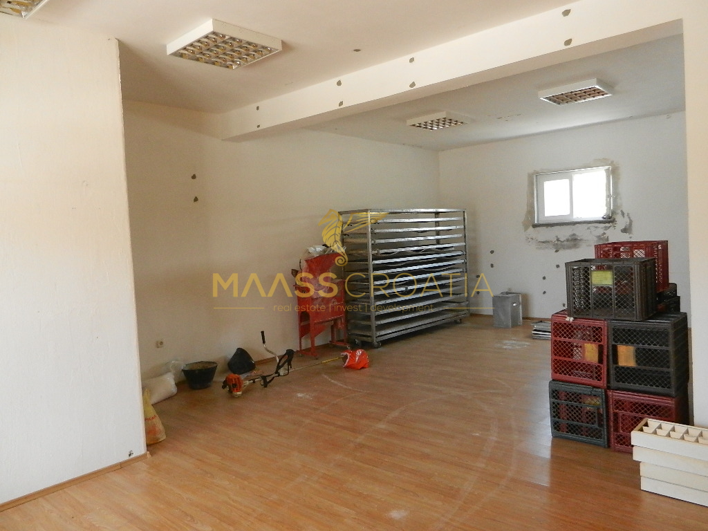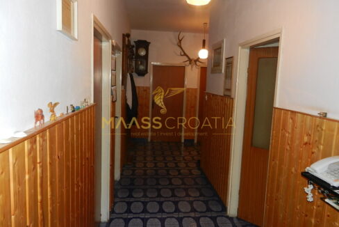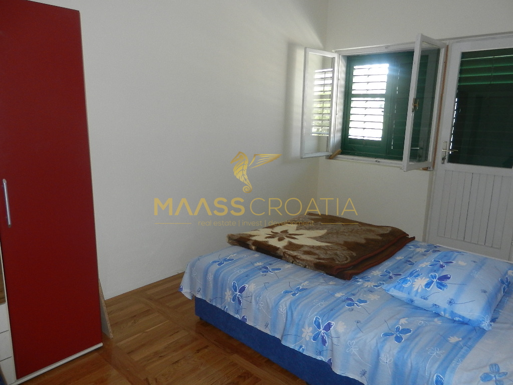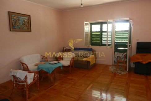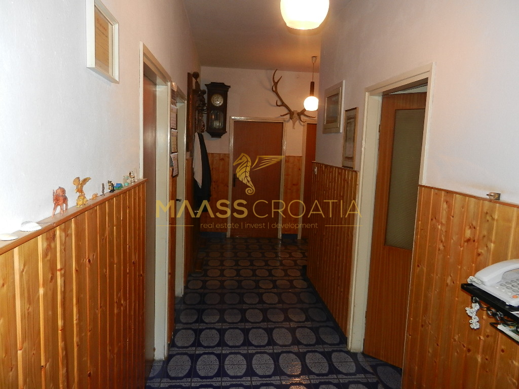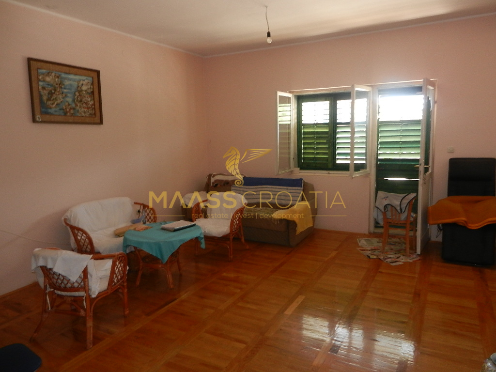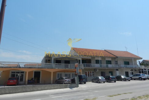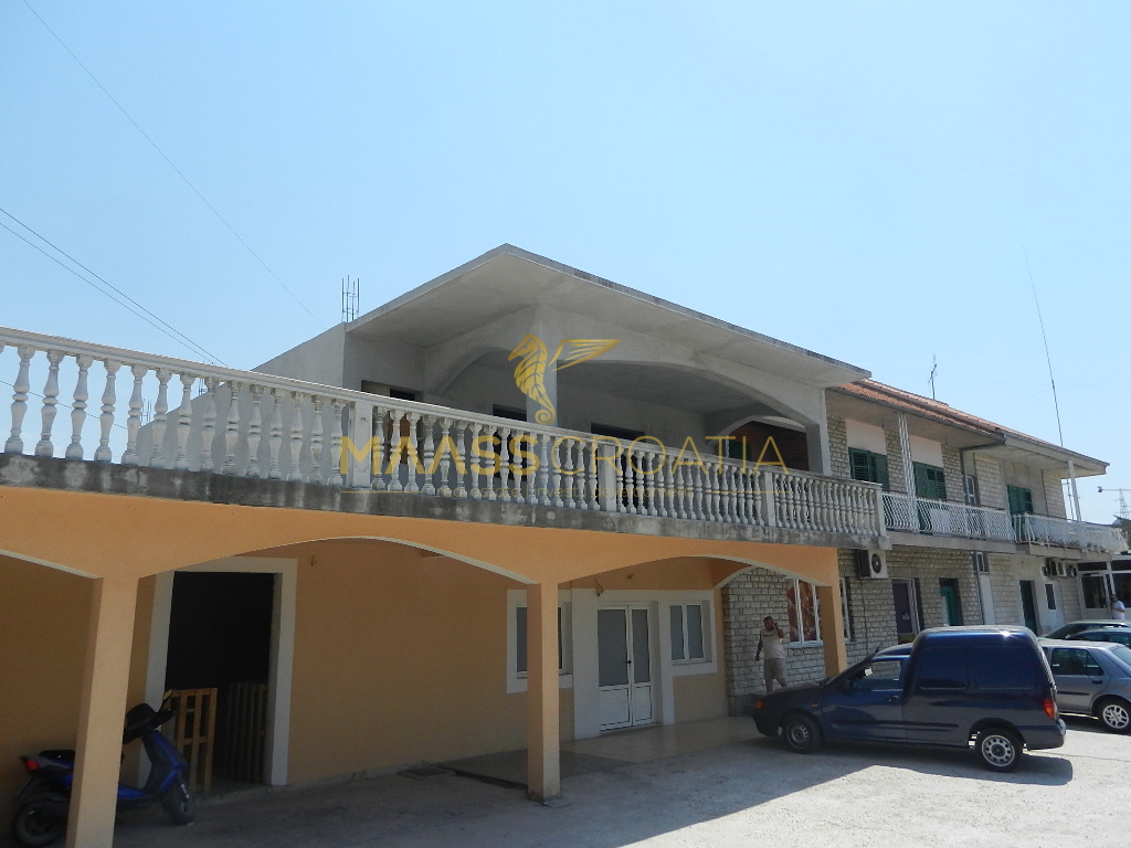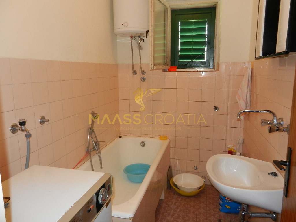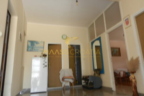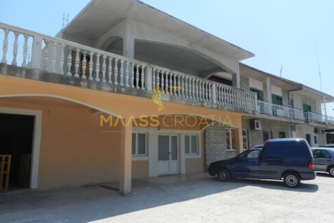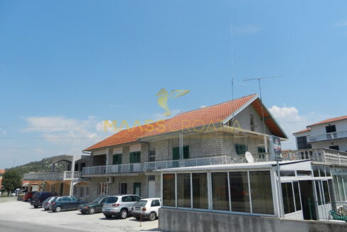 Den indvendige trappe fører til 1. sal, hvor der er tre boligenheder på i alt 241,49 m2. Lejlighed S1 indrettet og indflytningsklar med et areal på 100,86 m2, bestående af køkken med spisestue og stue som helhed, entre, badeværelse, toilet og 4 soveværelser + altan på 21,31 m2. Lejlighed S2 indrettet og indflytningsklar med et areal på 68,63 m2, bestående af køkken med spisestue og stue som helhed med udgang til terrasse på 70,92 m2, depotrum, soveværelse og badeværelse samt en altan på 10,92 m2. Lejlighed S3 med et areal på 72 m2 installeret i skalkonstruktion med del af PVC-tømrer + en stor terrasse på 72 m2 og en loggia på 28 m2. med sætning. Grunden på 742 m2 er indhegnet og parkeringspladsen er foran bygningen. Centrum af Šibenik og havet ligger 3 km derfra.