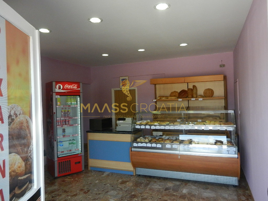 I stueplan er der fem erhvervslokaler på i alt 398,25 m2 med to butikker, bager, salgshal og buffet, og alt er sat op og i drift.