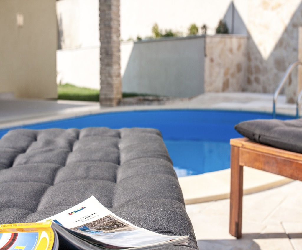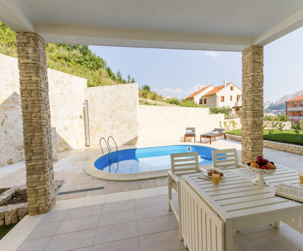 Dobbelthuset med en grund på 234 m2 ligger cirka 800 meter i luftlinje fra havet, med egen pool på cirka 3,5x5,5m...