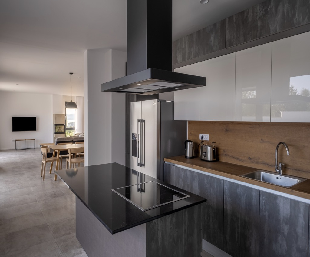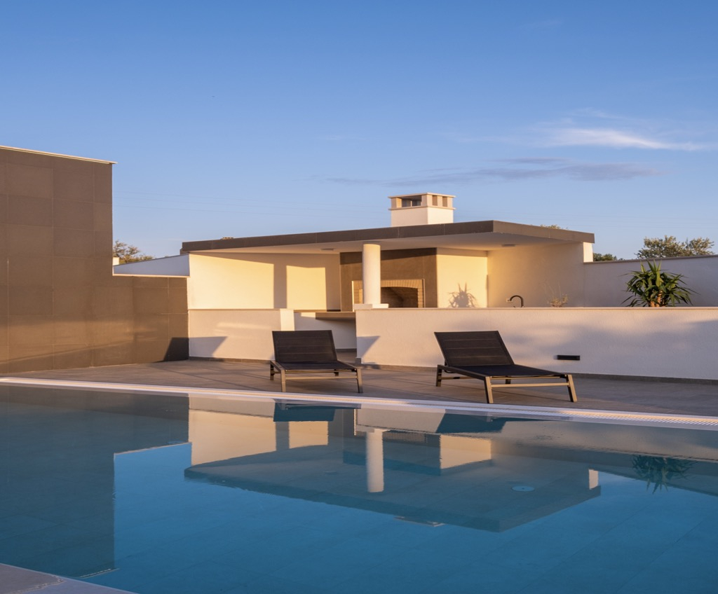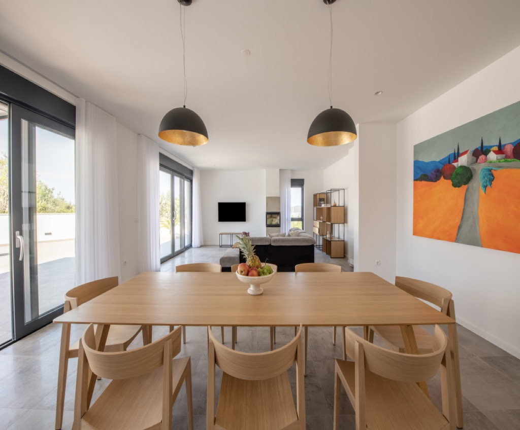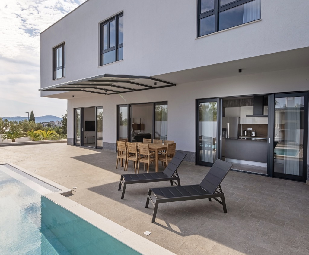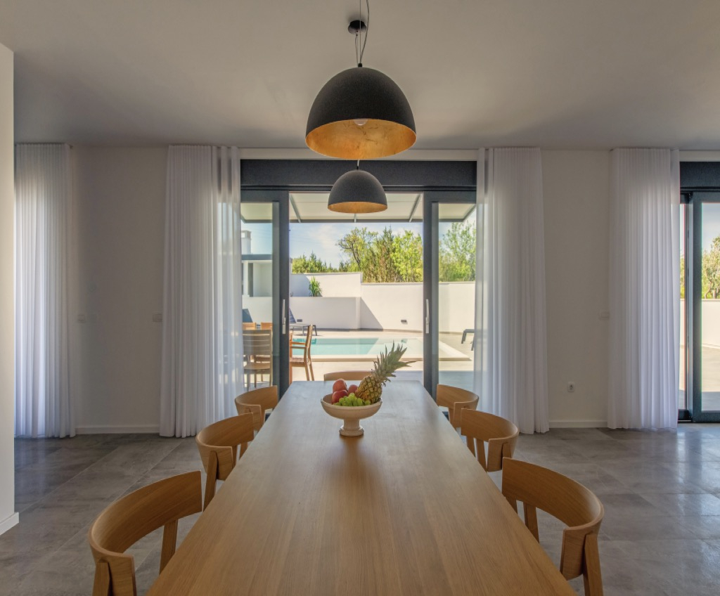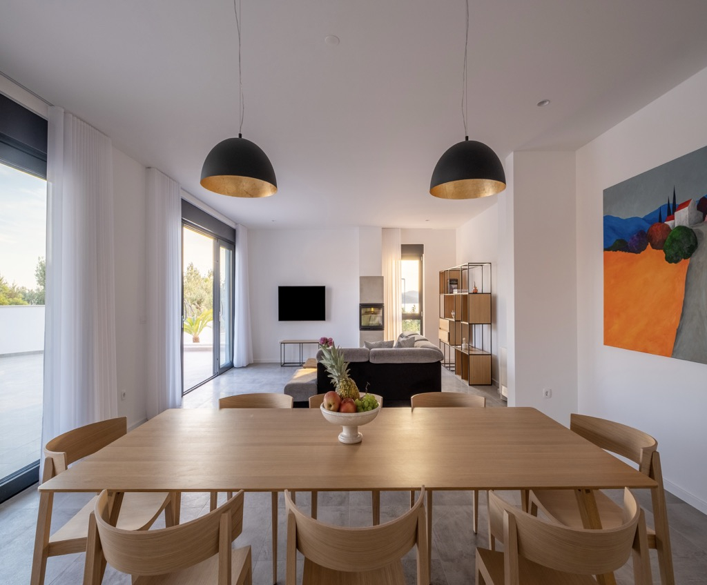 Rene, minimalistiske finish, suppleret af moderne indendørs og udendørs apparater, giver huset et kunstnerisk, men yderst funktionelt udseende. De løfter hele hjemmet og giver det en elegant og luksuriøs fornemmelse.