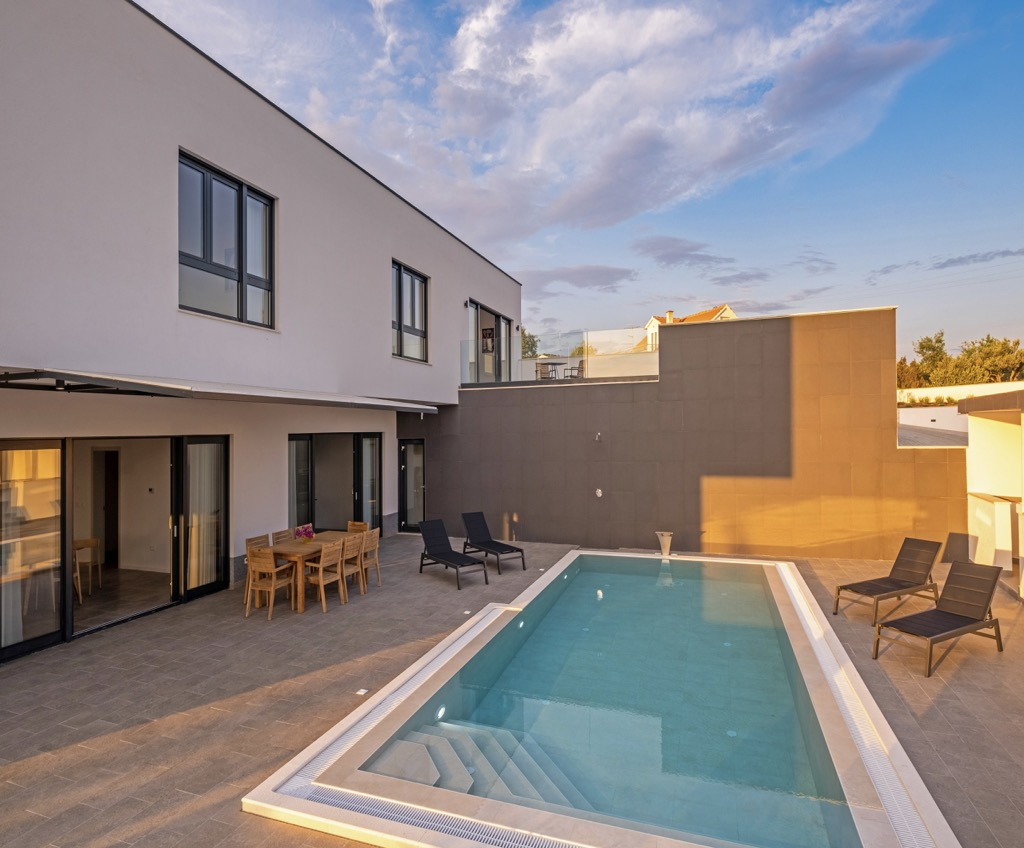 Smuk moderne villa med pool og legeplads