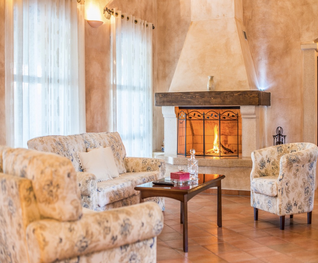Højt til loftet, stenvægge, gulve og en enorm pejs vil få dig til at føle, at du bor i et eventyrslot.