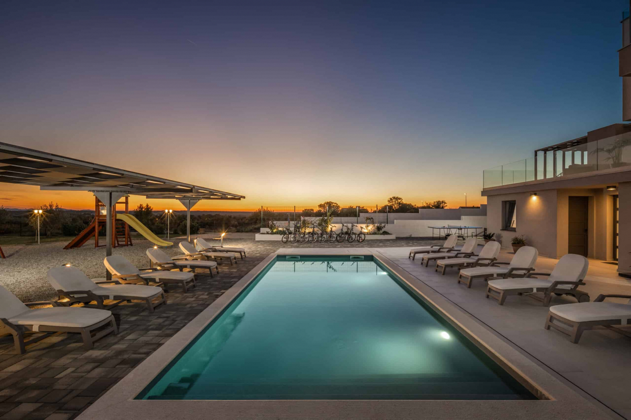 Etter en dag med utforskning av Zadar og området rundt, kan du slappe av i det 45 kvadratmeter store svømmebassenget eller trene i treningsstudioet på stedet. Badstuen er det perfekte stedet å slappe av og lade opp, mens gulvvarme og klimaanlegg sikrer komfort året rundt.