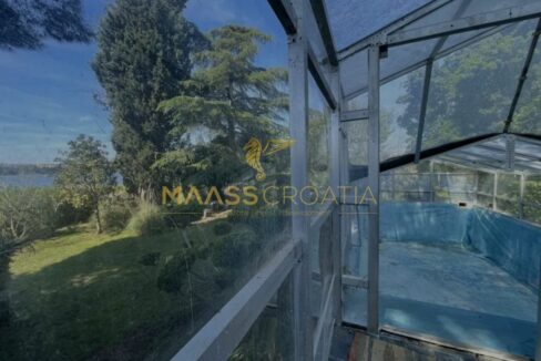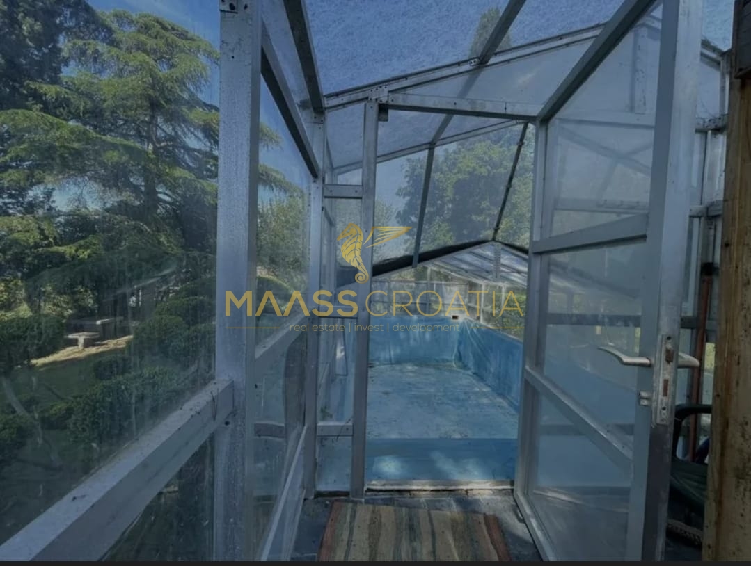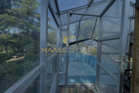 Ved siden af huset er der en overdækket pool, en stor garage, et drivhus, et brændeskur og en parkeringsplads, hvor flere køretøjer kan parkeres.