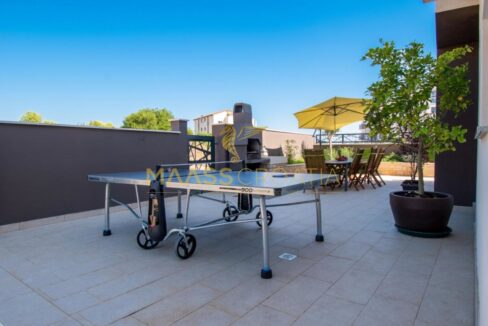 På første sal er der tre soveværelser med hver sit badeværelse og toilet. Det store soveværelse har en terrasse med smuk udsigt over havet og halvøen Vižula.