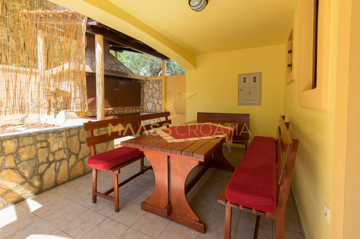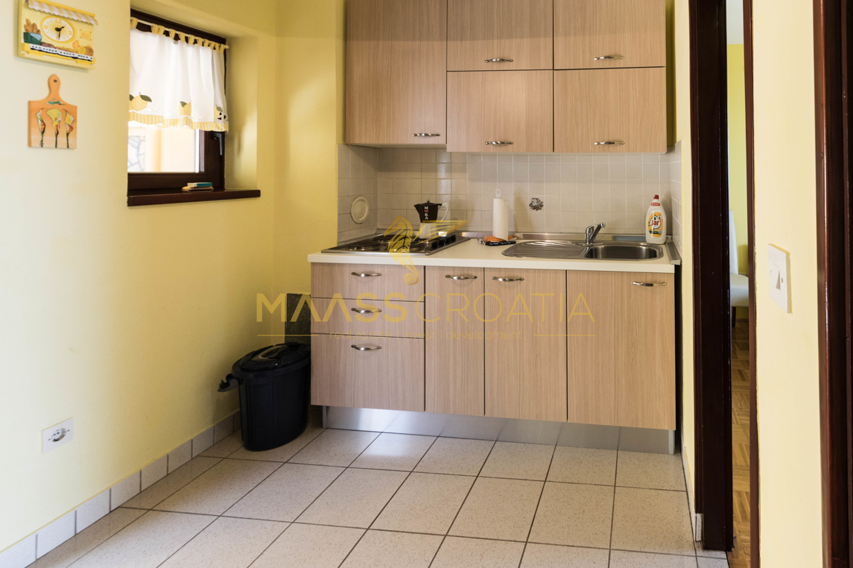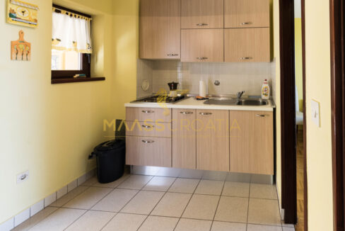 På første sal er der en lejlighed med 2 soveværelser, som har udgang til altaner med smuk udsigt over havet, Zadar og øen Ošljak. Foran lejligheden på første sal er der en rummelig terrasse med pejs.