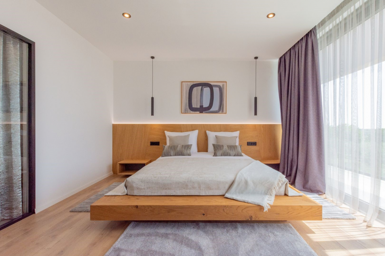Selve villaen kan skryte av et romslig interiør med 320 m² boareal. Med 4 soverom og 6 bad er det god plass til store familier eller vennegrupper. Den åpne stuen og spisestuen er perfekt for underholdning og tilbyr fantastisk utsikt over det omkringliggende landskapet gjennom de store vinduene.