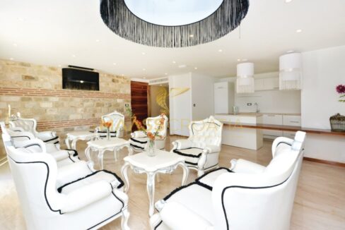 Der er også et fællesrum til at underholde gæster, samt i alt 180 m² overdækket terrasseplads.