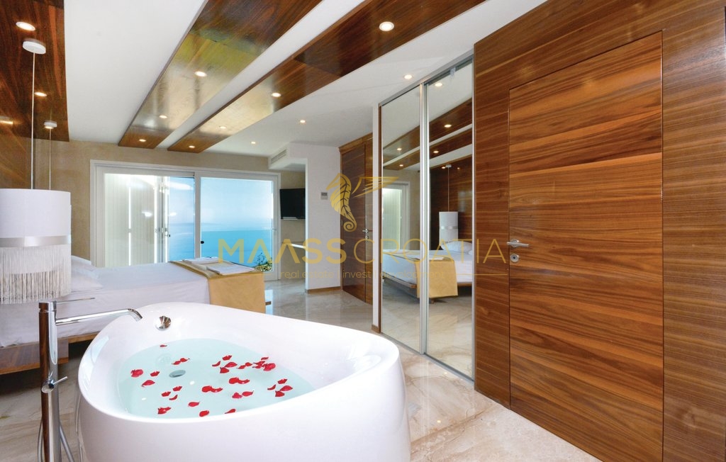 Denne specielle og smukke luksuriøse villa med pool i Podstrana har en smuk udsigt over havet, øerne og byen Split takket være sin fremragende beliggenhed.