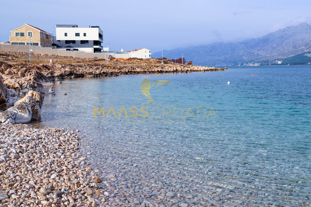 Lejligheden er designet i moderne stil. Inde i lejligheden er der trapper, som fører os op til den private tagterrasse, hvor der er et sommerkøkken, en pejs, udendørs bruser og et afslapnings-/solområde med pool. Fra terrassen er der en betagende udsigt over havet og Paklenica Nationalpark.