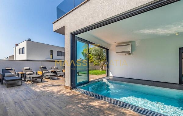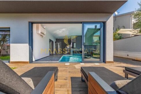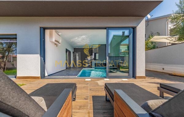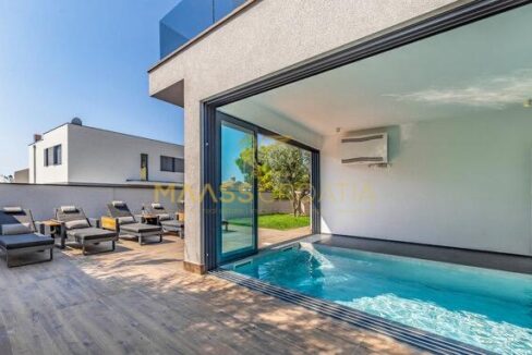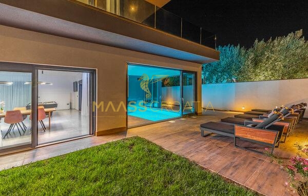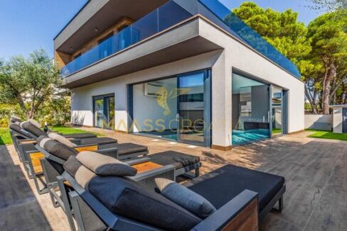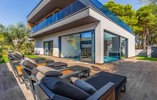 Til salg udbydes en moderne villa med swimmingpool, kun 200 m fra stranden. Villaen har et boligareal på 285 m² og ligger på en grund på 480 m², omgivet af pinjetræer.