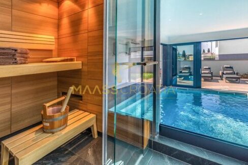 Den luksuriøse villa er udført i materialer af høj kvalitet og omfatter gulvvarme, varmepumper, termofacade, solpaneler, keramik, møbler og hårde hvidevarer. Ejendommen er i den afsluttende fase af færdiggørelsen.