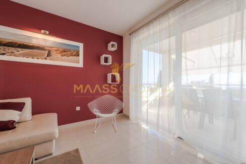Der sælges en lejlighed på første sal i en luksusvilla, som ligger direkte ved kysten i Novalja på øen Pag.
