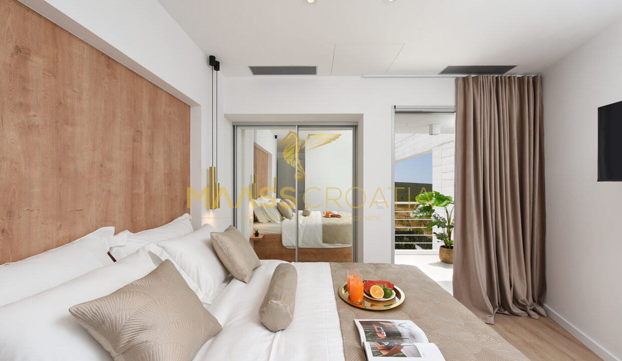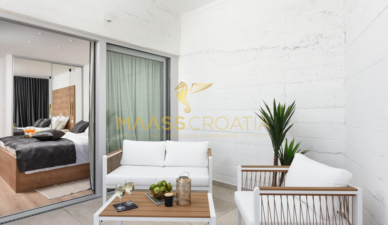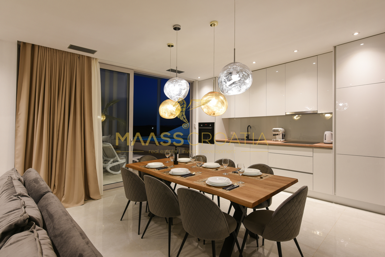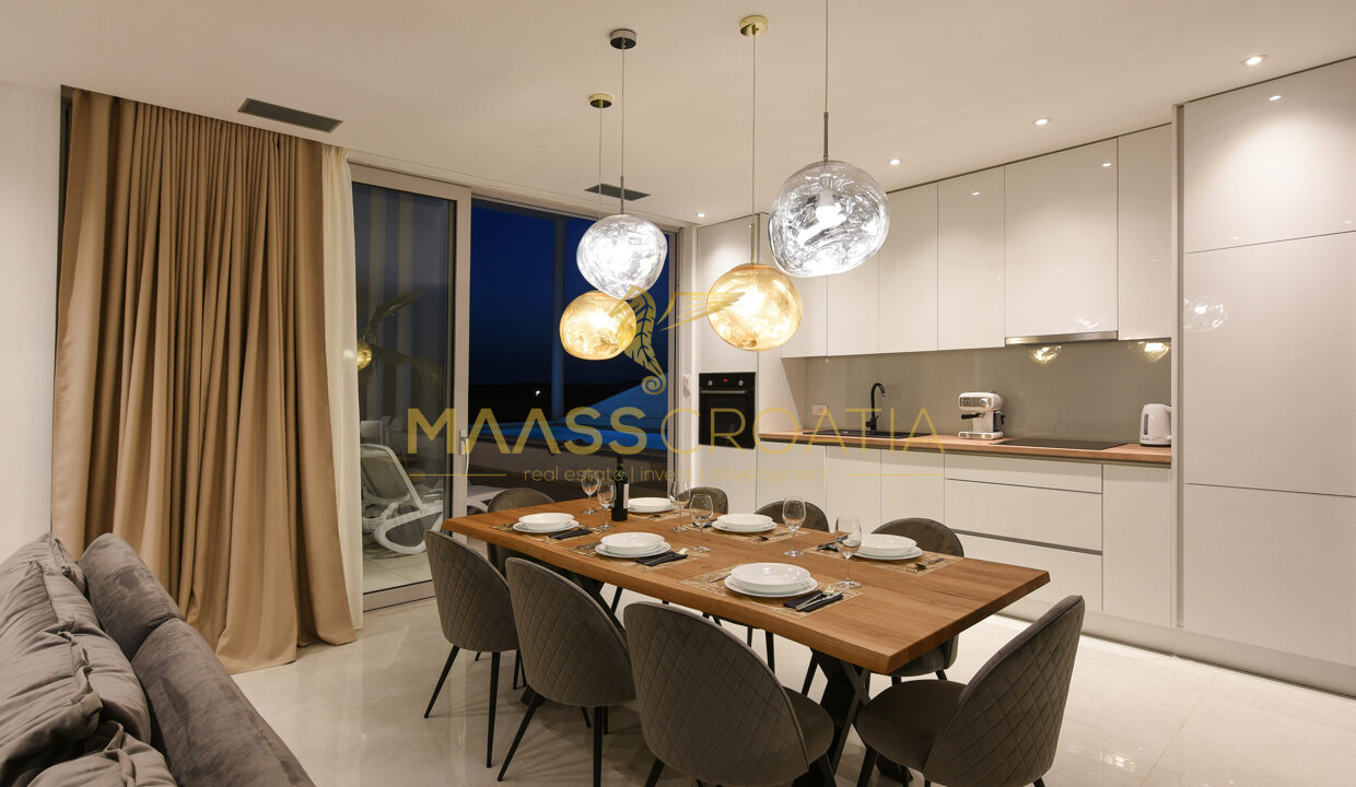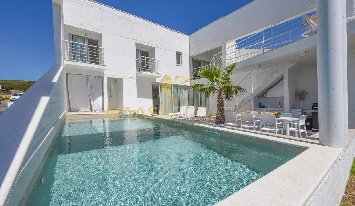Denne unikke, moderne luksusvilla har fundet sin plads i den fredelige lille by Debeljak, tæt på Zadar. Den er beliggende langt væk fra hverdagens stress og trafik i de større byer. Fra alle sider af villaen er der en rig panoramaudsigt over grønne landskaber, bakker samt havet og øerne. Denne villa er det perfekte valg for dem, der ønsker at leve et stille liv i et lokalt fællesskab – med garanteret privatliv og sindsro, da ejendommen ligger helt afsides.