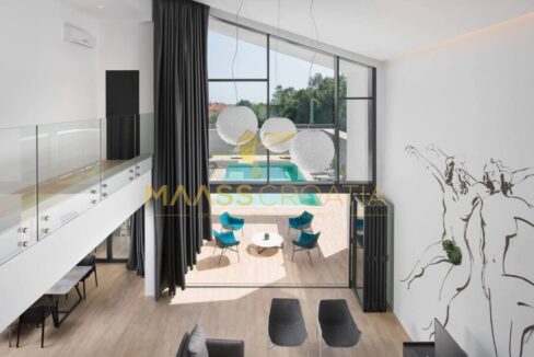 I kælderen er der maskinrum, toilet og underholdningsrum (bordtennisbord, motionscykel). I stueetagen er der en lys-belyst stue med et galleri og vinduer, der strækker sig til loftet, herunder et rummeligt, ultramoderne køkken med spiseplads og et soveværelse og badeværelse designet til handicappede.