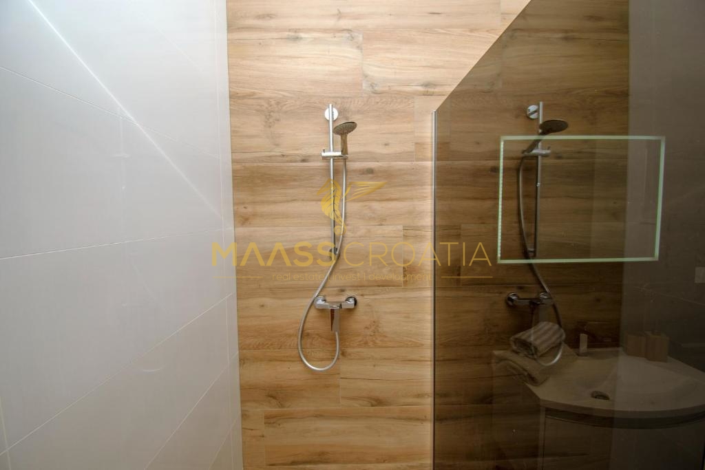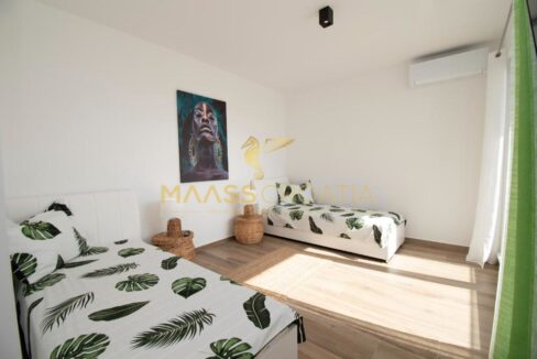 Et af soveværelserne har egen terrasse, det andet deler en terrasse med et afslapningsområde, der indeholder sauna, bruser og smuk havudsigt.