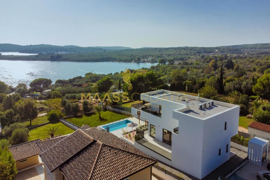I en rolig beliggenhed i Pomer, væk fra hovedvejen og larm, ligger denne nybyggede villa med smuk havudsigt fra næsten alle værelser.