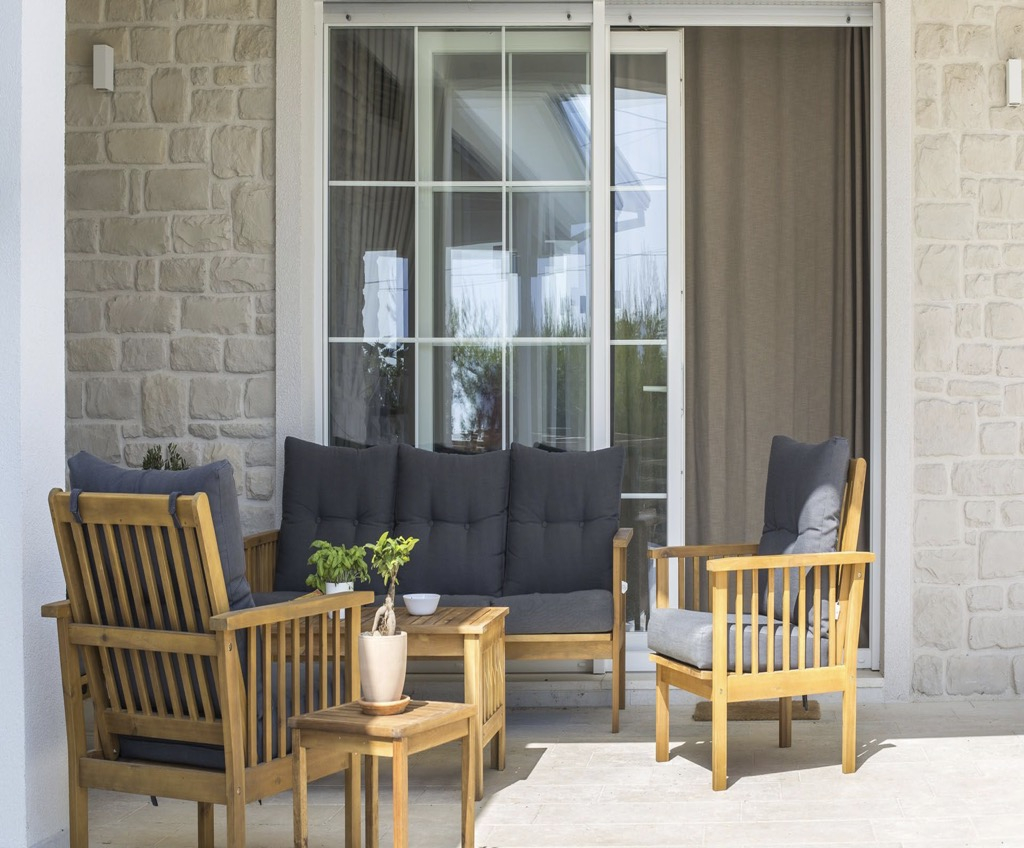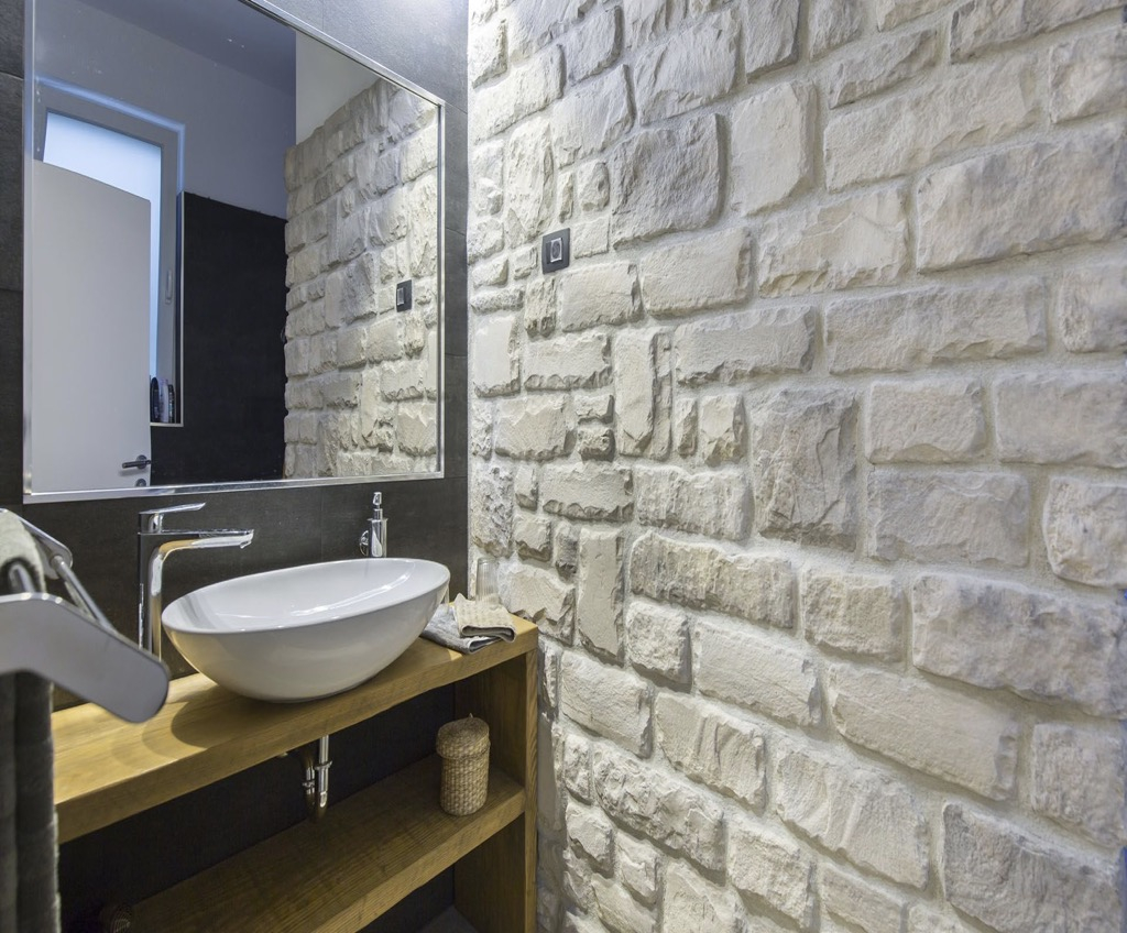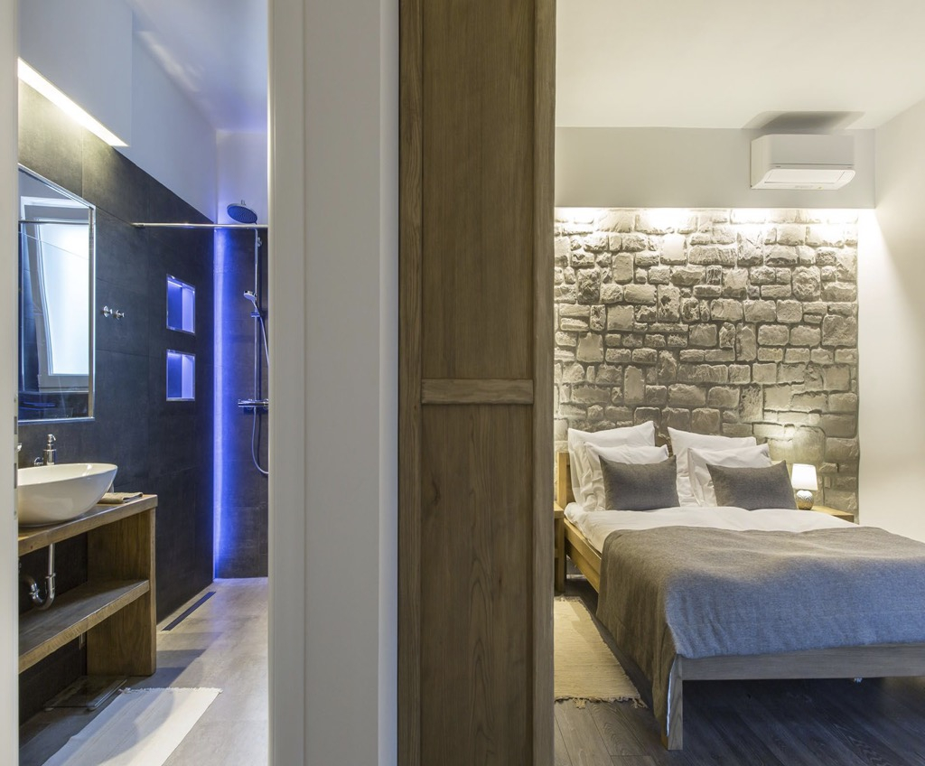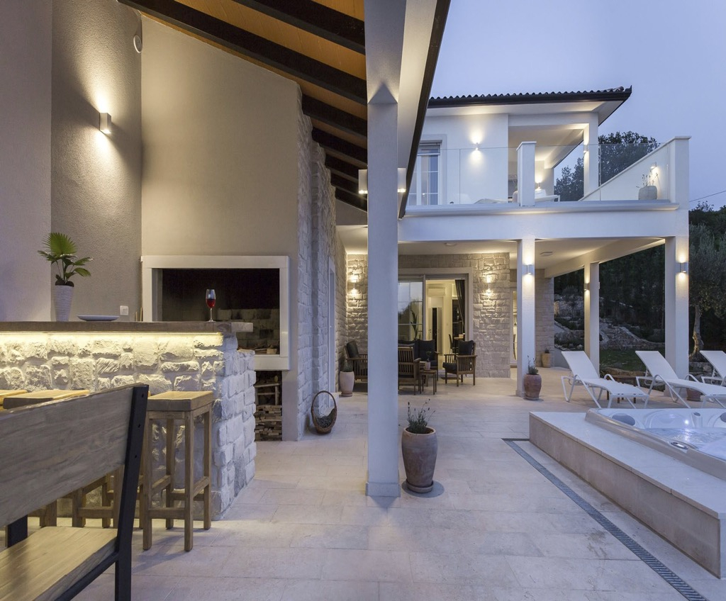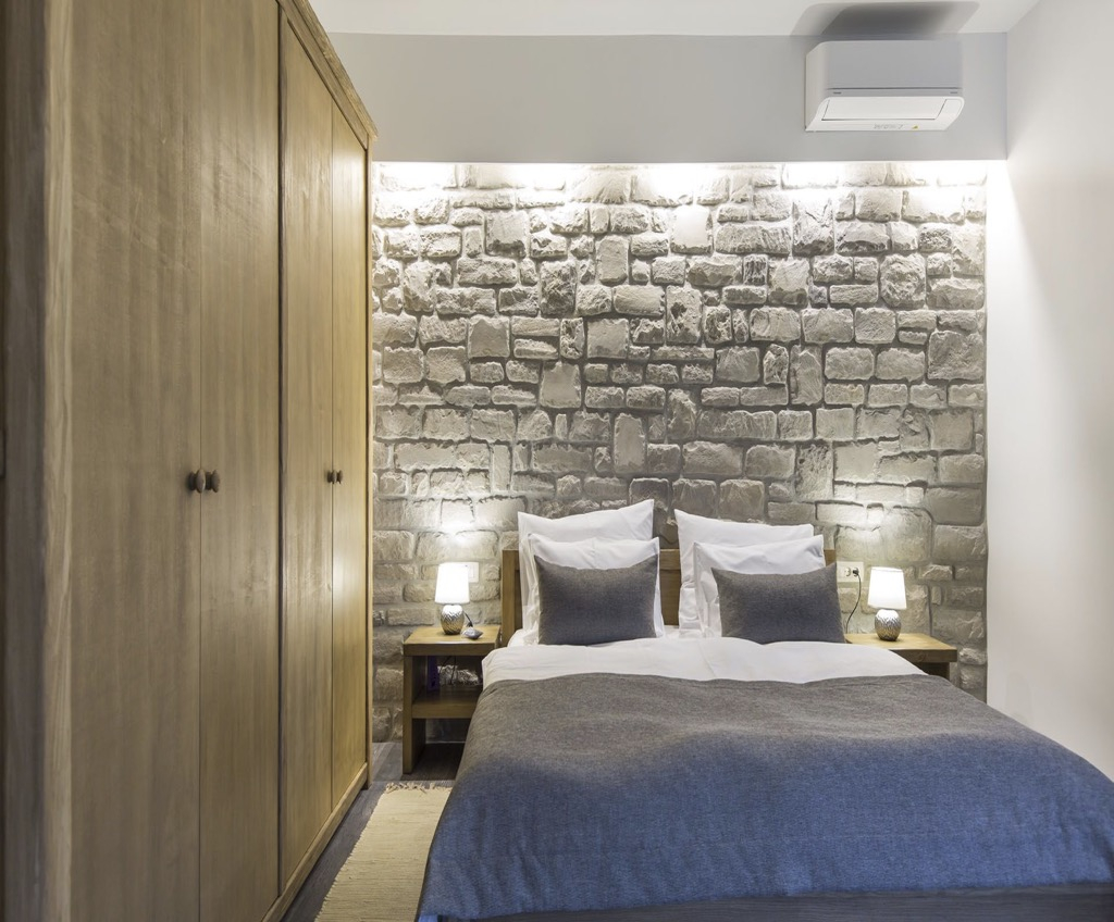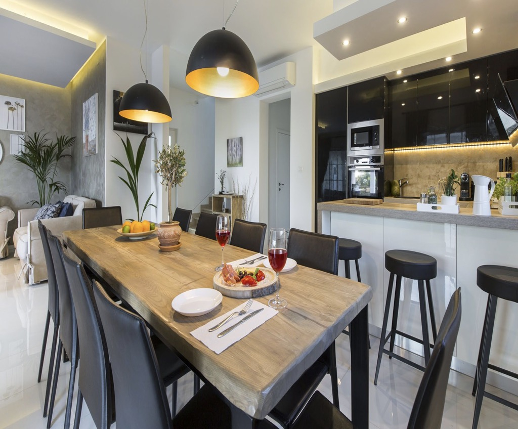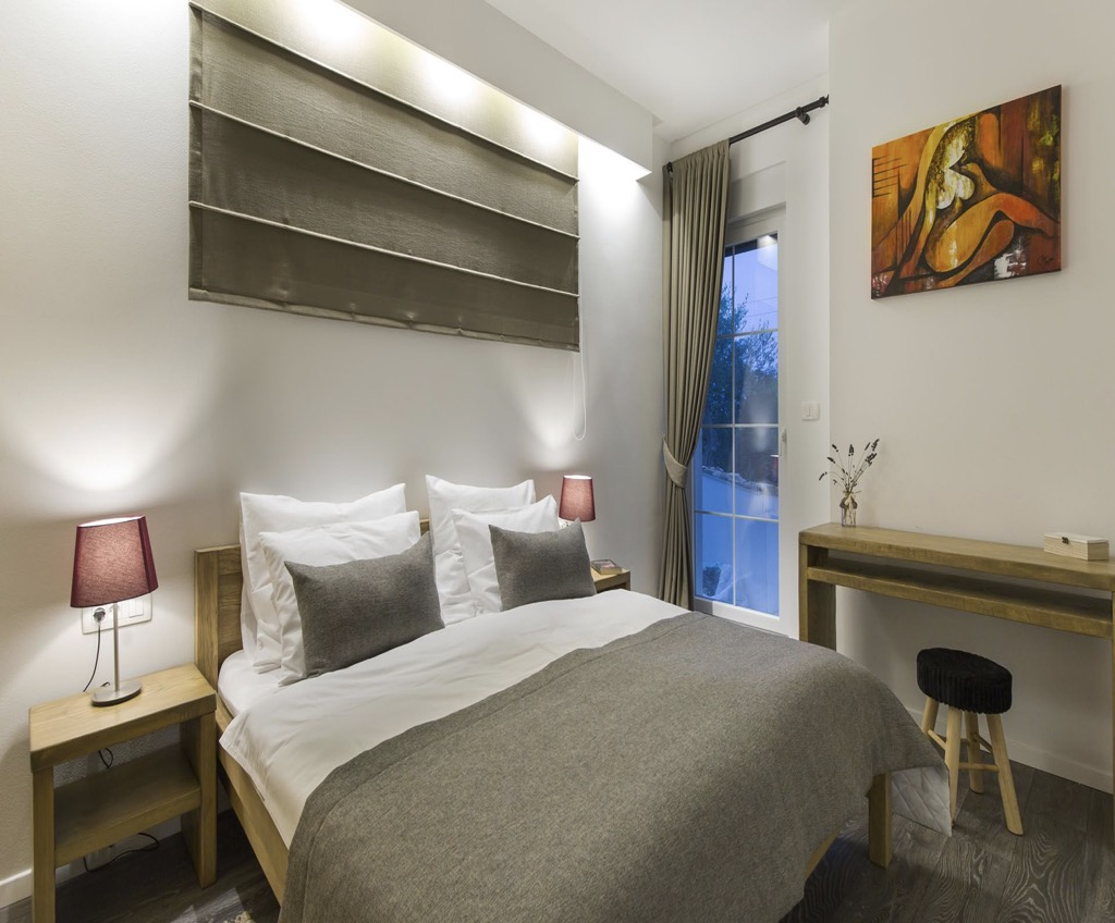 Indretningen er enkel og minimalistisk, men dekoreret med naturlige materialer som sten og hårdttræ, hvilket giver huset en ægte middelhavsfølelse.