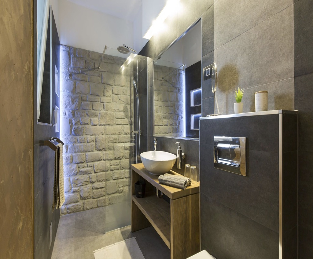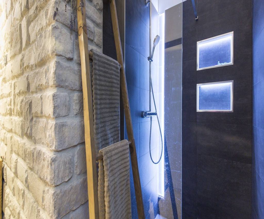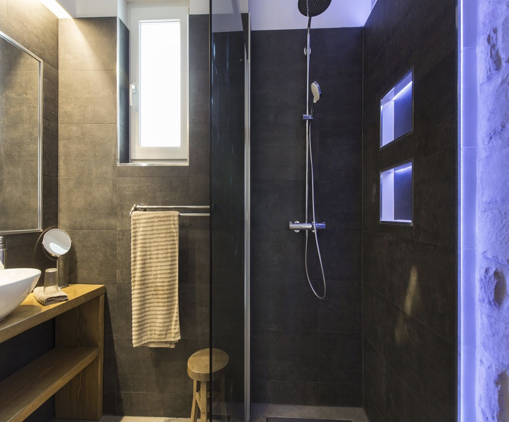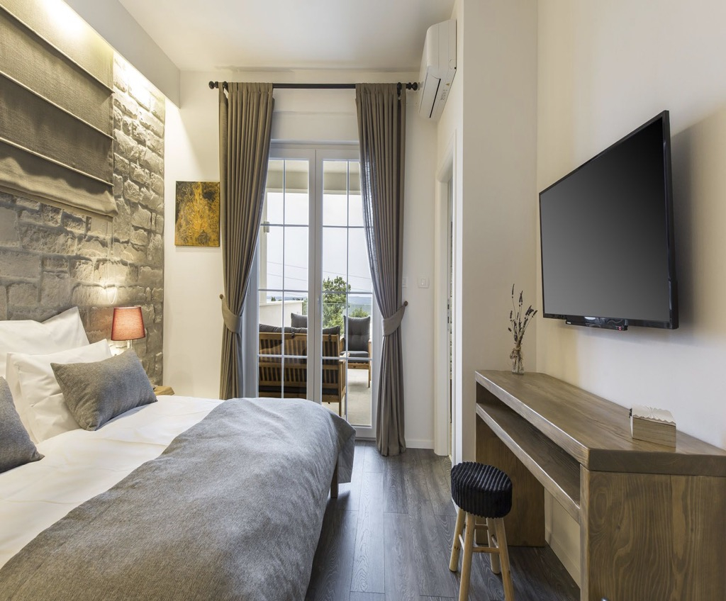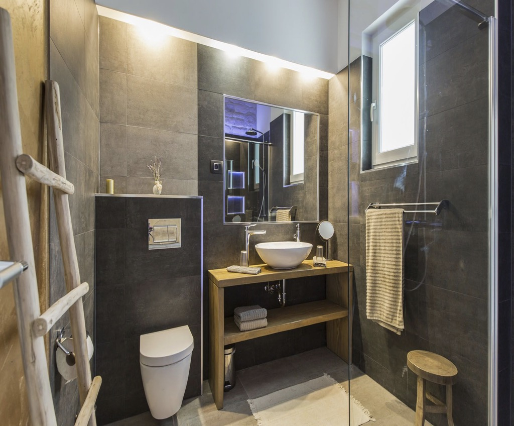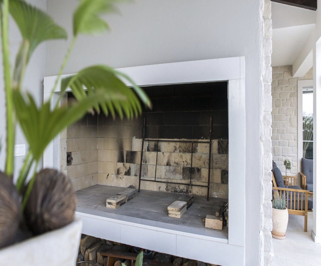 Indretningen er enkel og minimalistisk, men dekoreret med naturlige materialer som sten og hårdttræ, hvilket giver huset en ægte middelhavsfølelse.