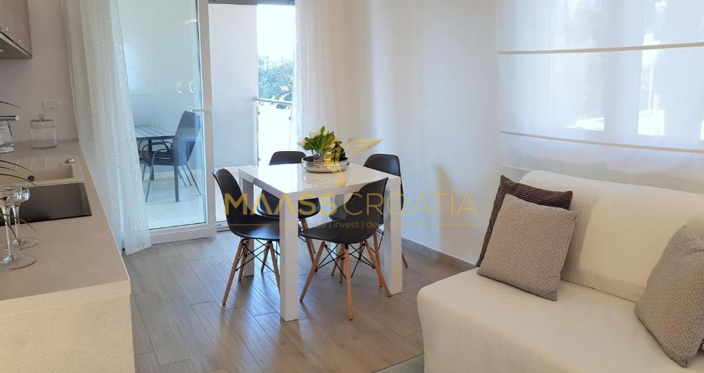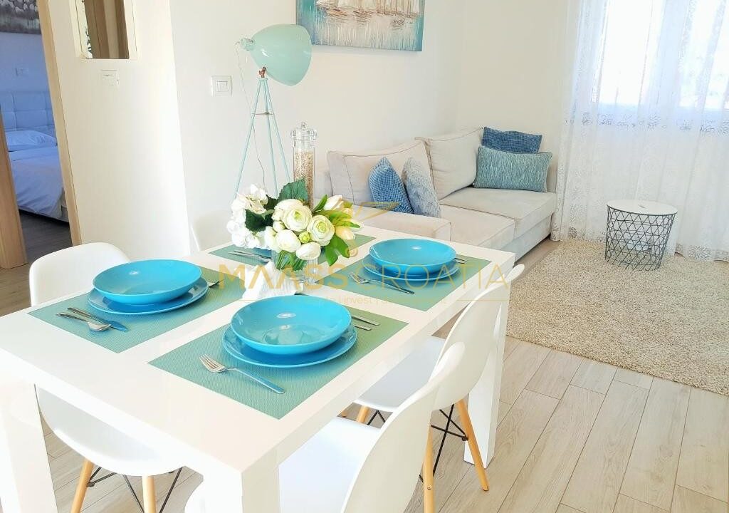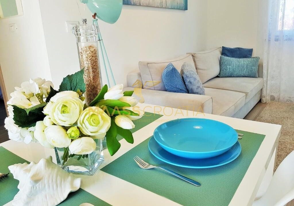 Lejlighederne i stueetagen har direkte adgang til swimmingpoolen, solterrassen og den anlagte have, mens lejlighederne på øverste etage råder over rummelige terrasser.