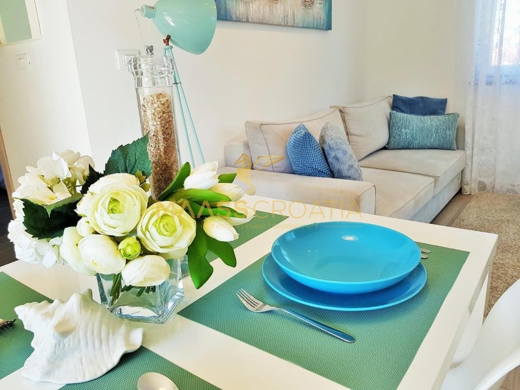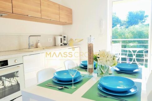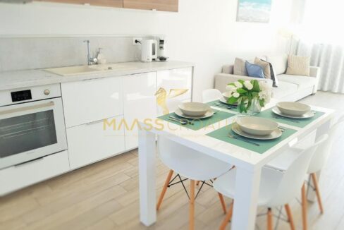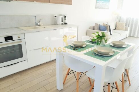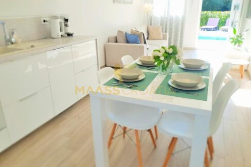 Lejlighederne i stueetagen har direkte adgang til swimmingpoolen, solterrassen og den anlagte have, mens lejlighederne på øverste etage råder over rummelige terrasser.