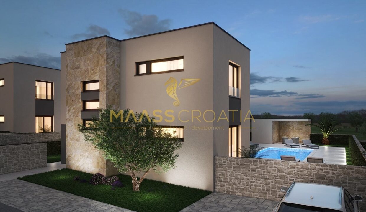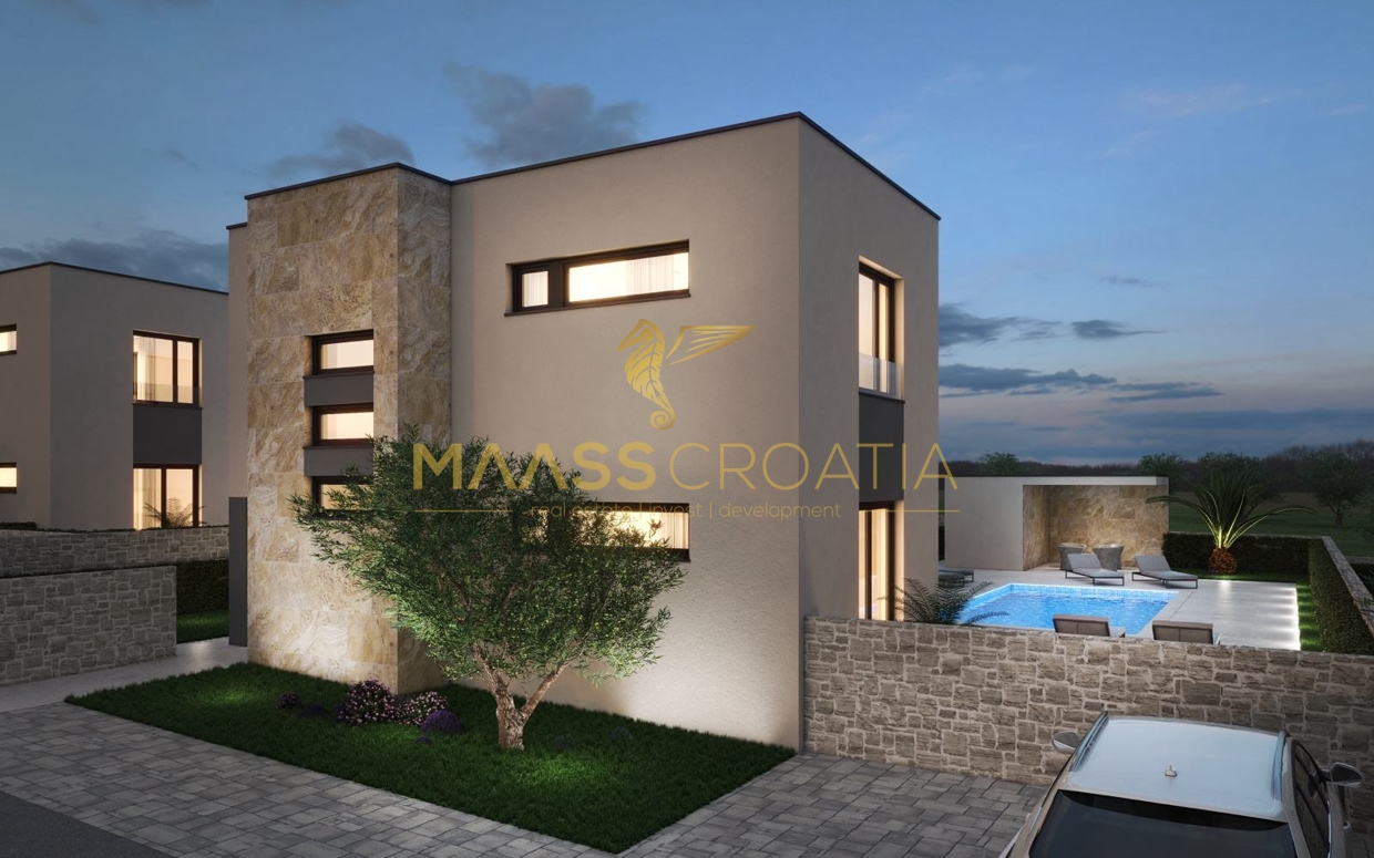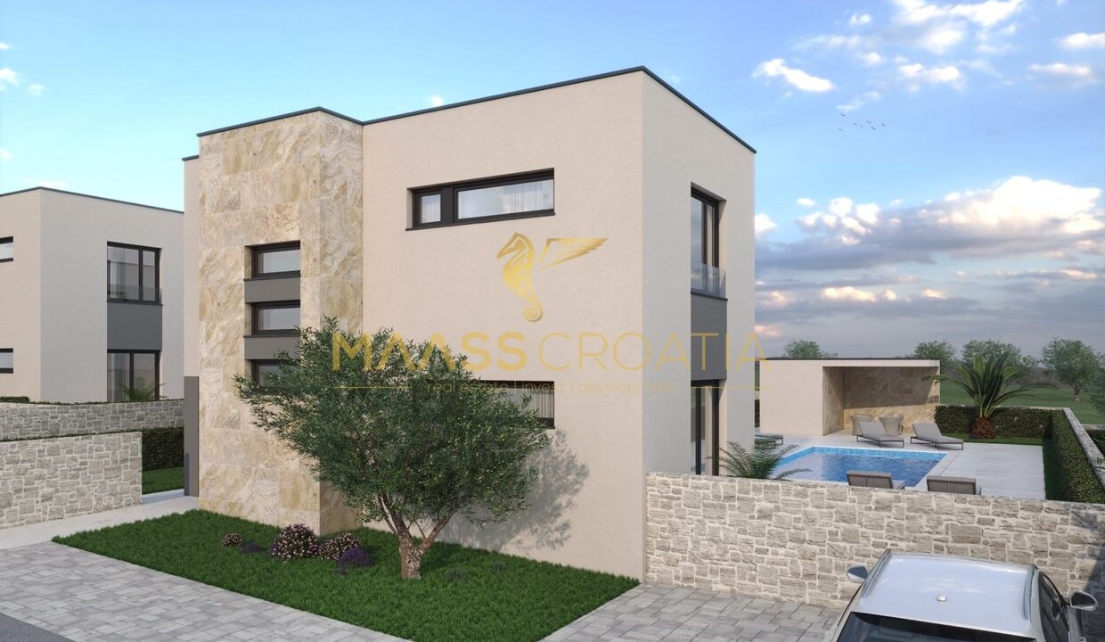 Ejendommen er et eksklusivt projekt på en rummelig grund på 600 m² med privat parkering og en swimmingpool på 8×4 m.