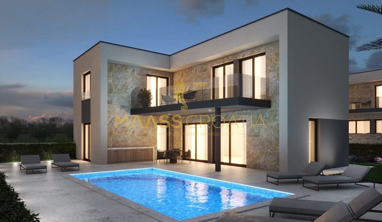 Attraktiv beliggenhed i Peroj, kun 450 meter fra havet. Denne luksuriøse og moderne villa i middelhavsstil har et boligareal på 200 m². Den udmærker sig ved sin elegance og tilbyder en fantastisk udsigt over Brijuni-øhavet og det krystalklare hav.