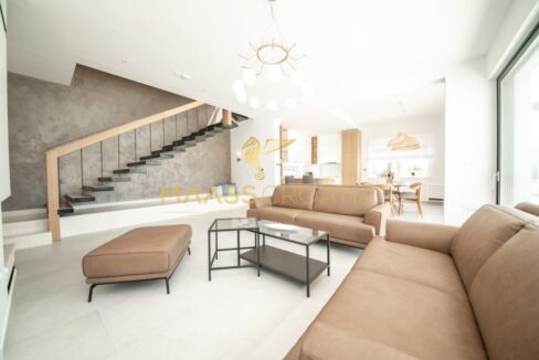 Moderne villa i en meget rolig beliggenhed, langt væk fra turistmasserne, men tæt nok på havet; Kun 5 km fra den første strand ligger dette nybyggede hus med fire soveværelser på øverste etage og en stor stue/spisestue i åbent plan med et stort køkken i stueetagen.