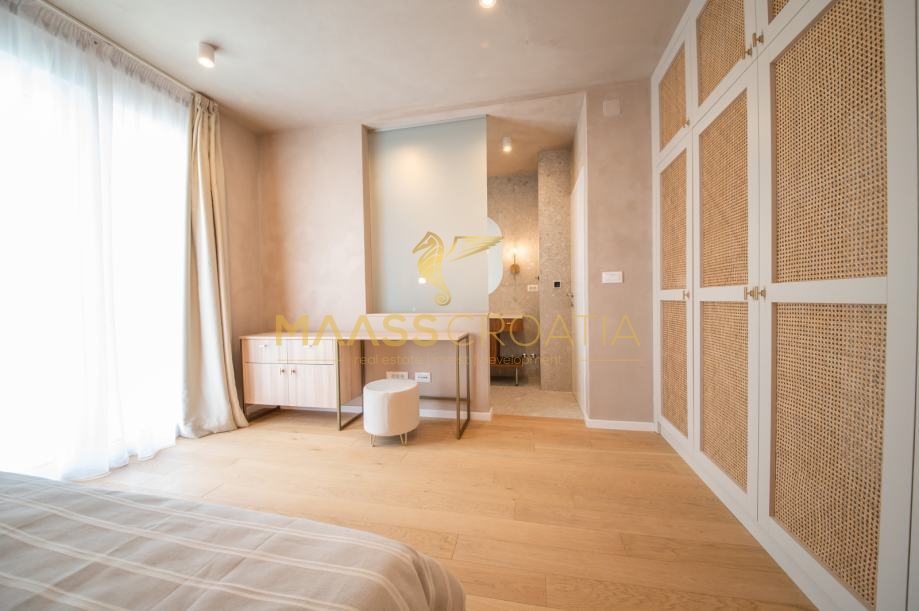 Stor lejlighed i to etager i Medulin: tæt på havet, havudsigt og 50 m² gård