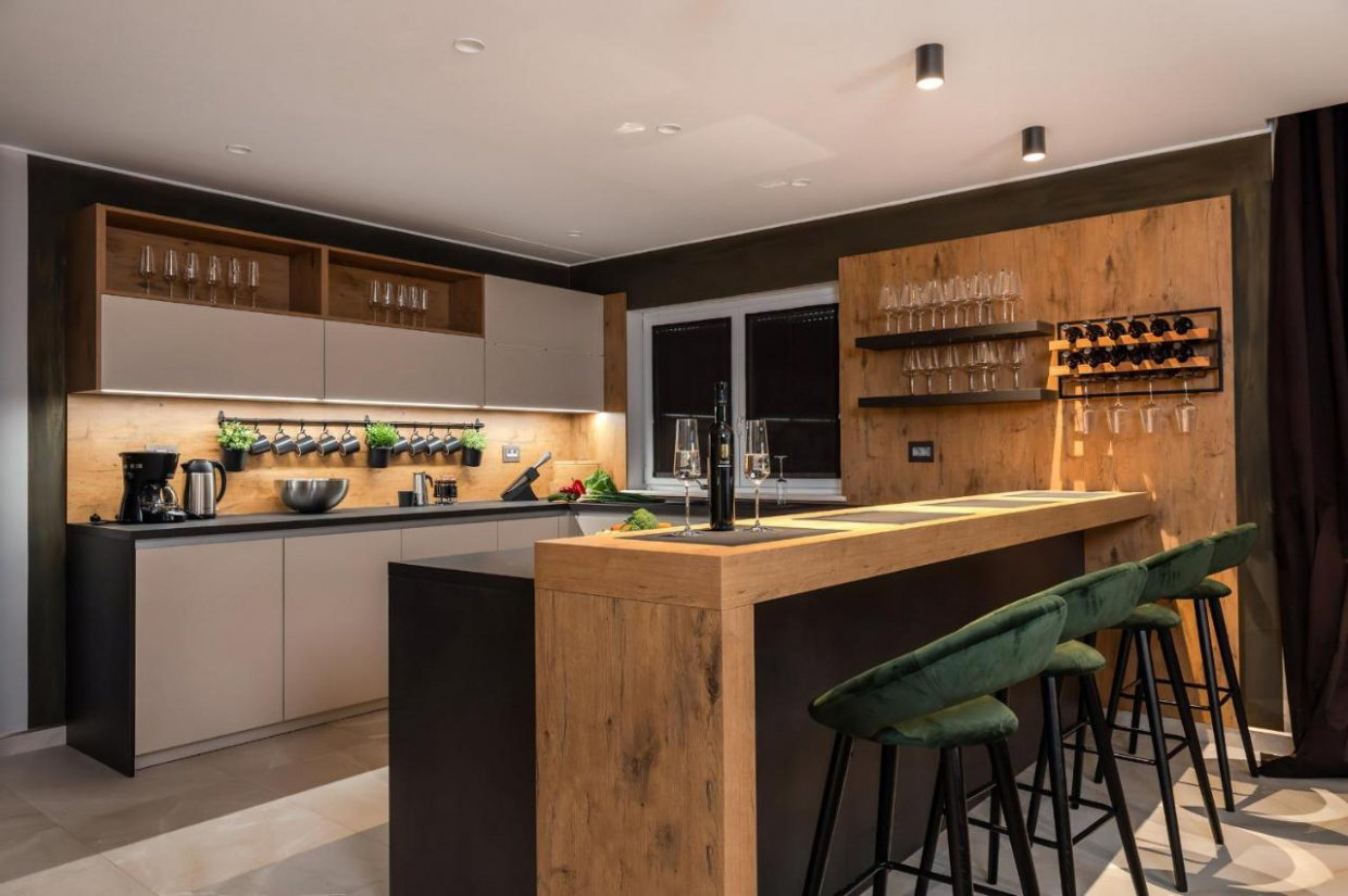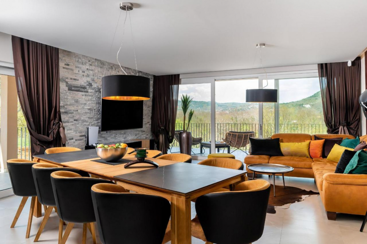 Det smukke udendørskøkken på den storslåede terrasse med udsigt over dalen er ideelt til alle sommersammenkomster, da det tilbyder et sted at slappe af og nyde naturen og den mest betagende udsigt, dette sted nogensinde har set!