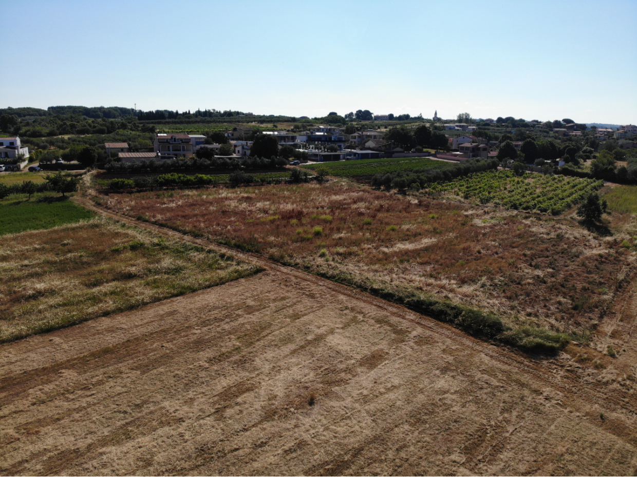 Grunden skråner blidt mod havet, hvilket garanterer en smuk udsigt, mens infrastrukturen er placeret direkte ved ejendomsgrænsen/indgangen. Afstanden til havet er 6,5 km, Poreč 13 km, Rovinj 45 km og Pula Lufthavn 60 km. Byggegrund – 1.019 m² – samlet areal