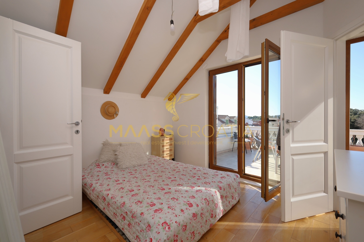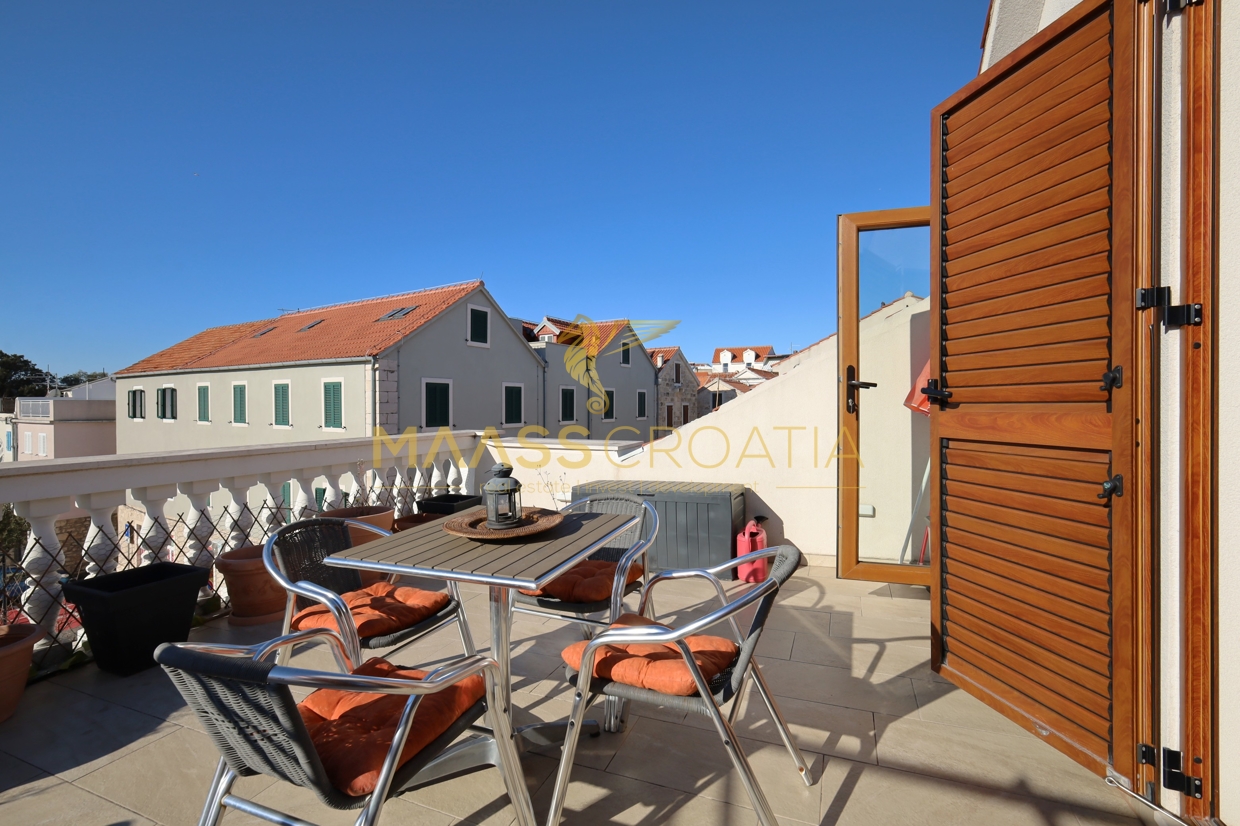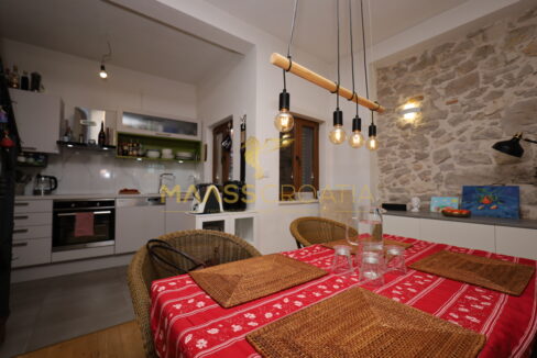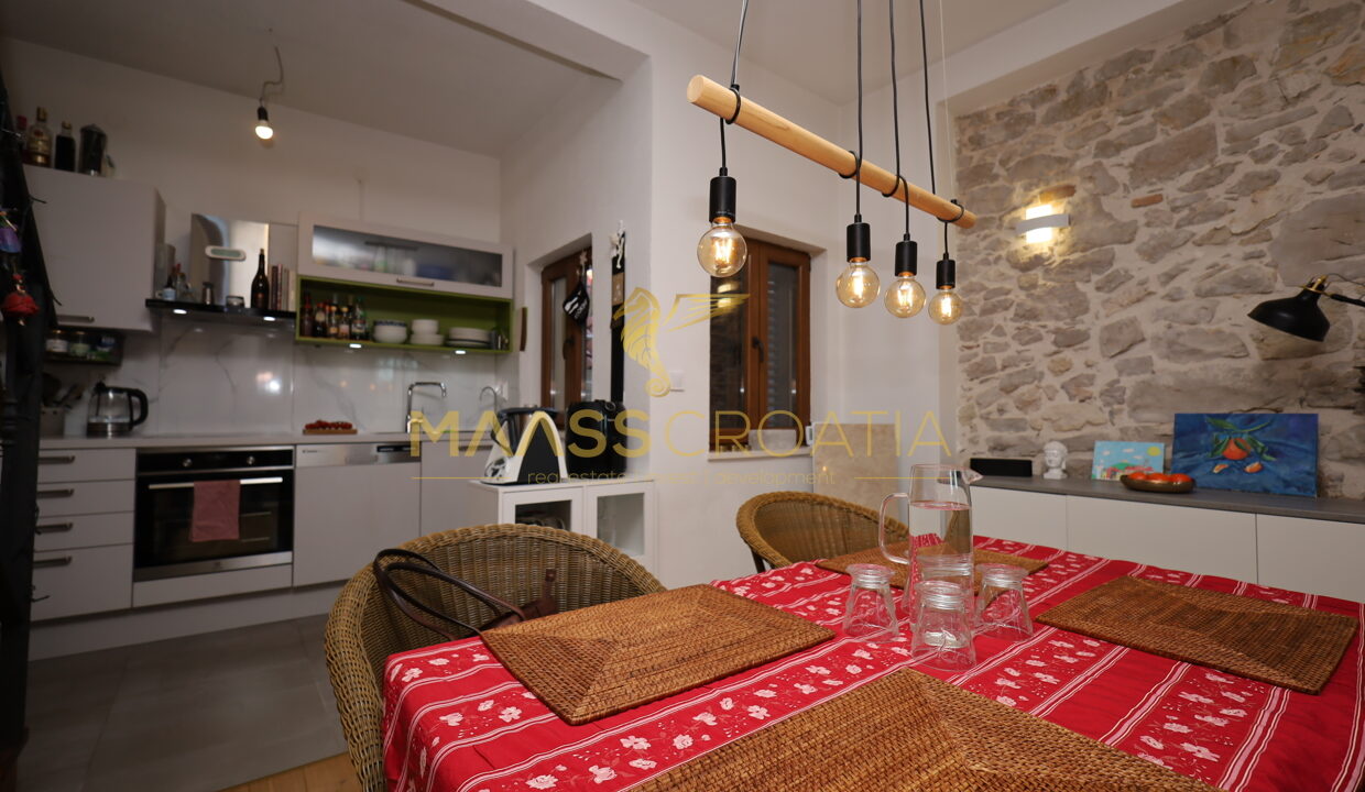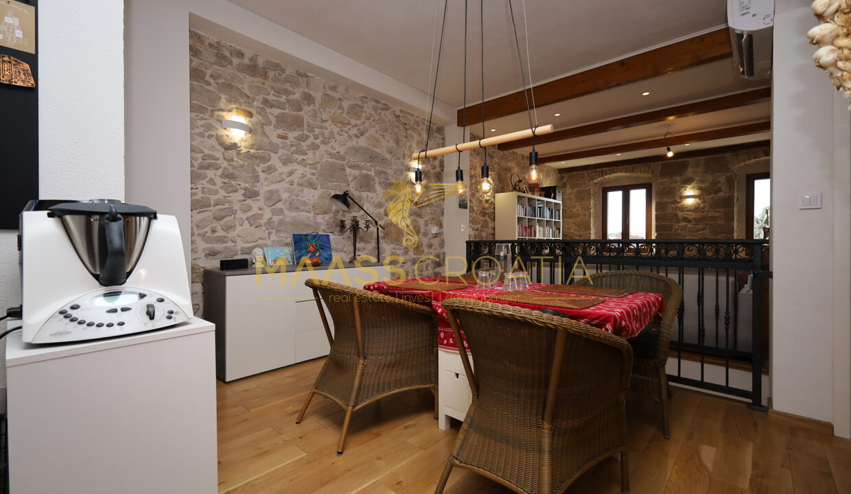 Komplet renoveret stenhytte i rustik stil i centrum af Vodice. Huset ligger i umiddelbar nærhed af strandpromenaden og stranden og har 4 etager (stueetage + 1. sal + 2. sal + højloftet loft) med et samlet anvendelsesareal på 170,1 m².
