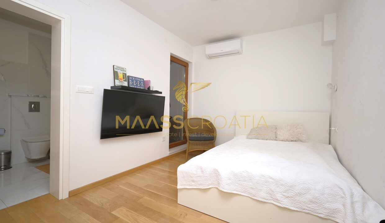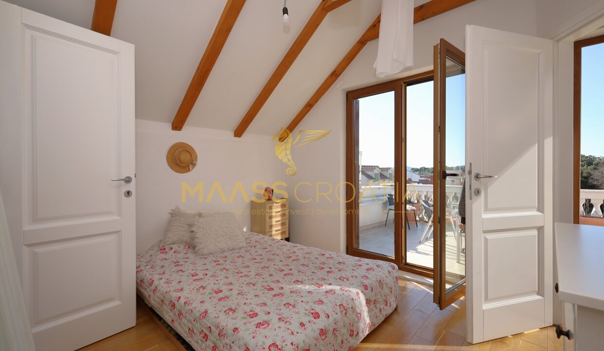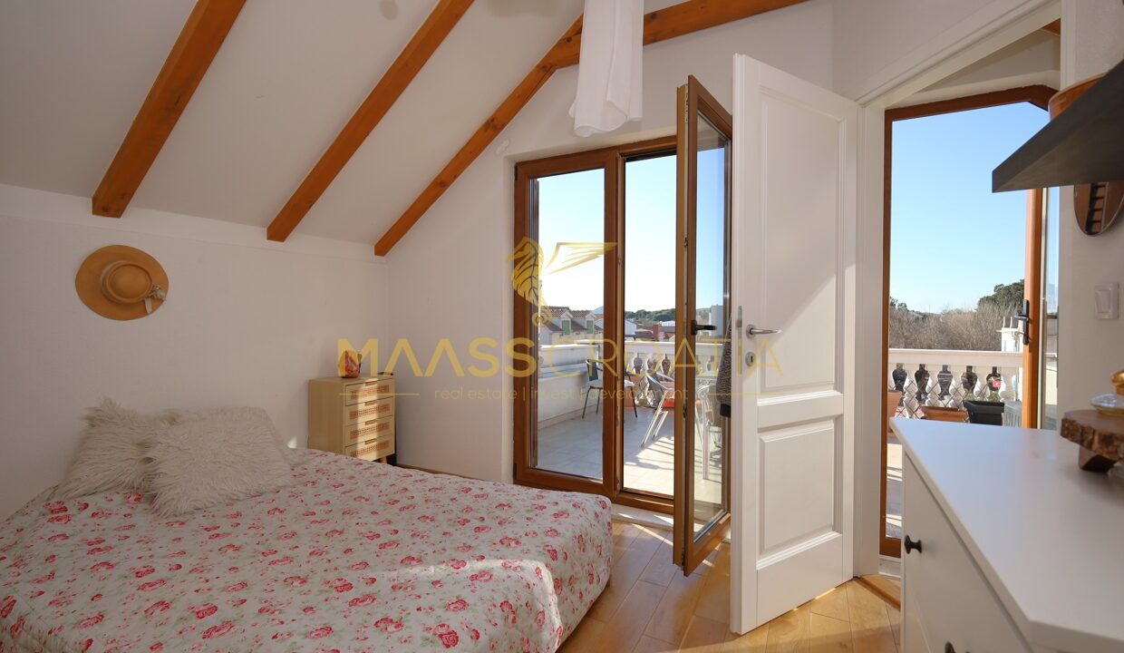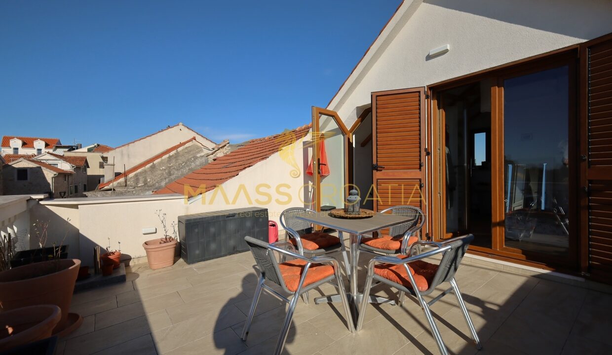 Komplet renoveret stenhytte i rustik stil i centrum af Vodice. Huset ligger i umiddelbar nærhed af strandpromenaden og stranden og har 4 etager (stueetage + 1. sal + 2. sal + højloftet loft) med et samlet anvendelsesareal på 170,1 m².