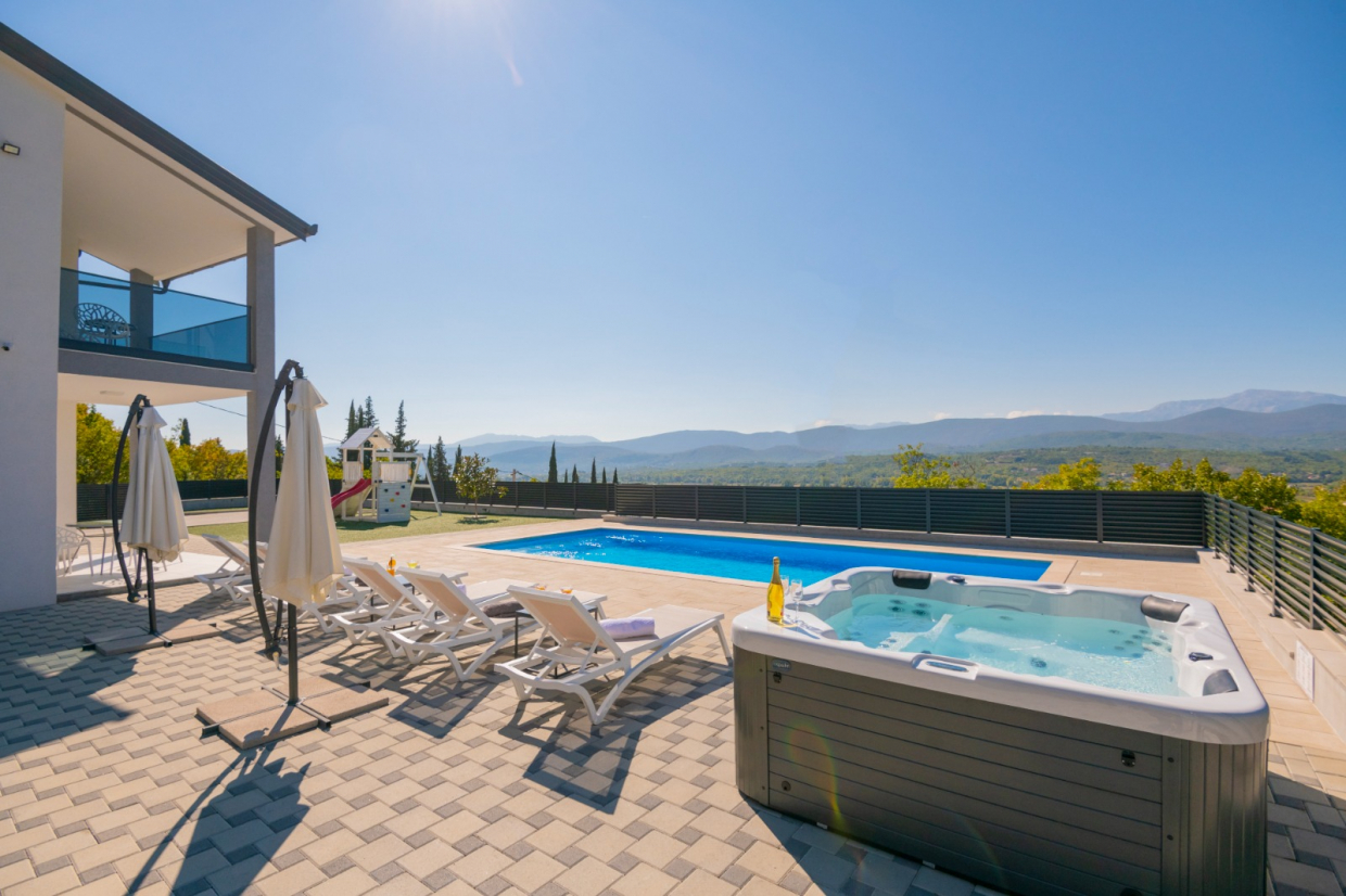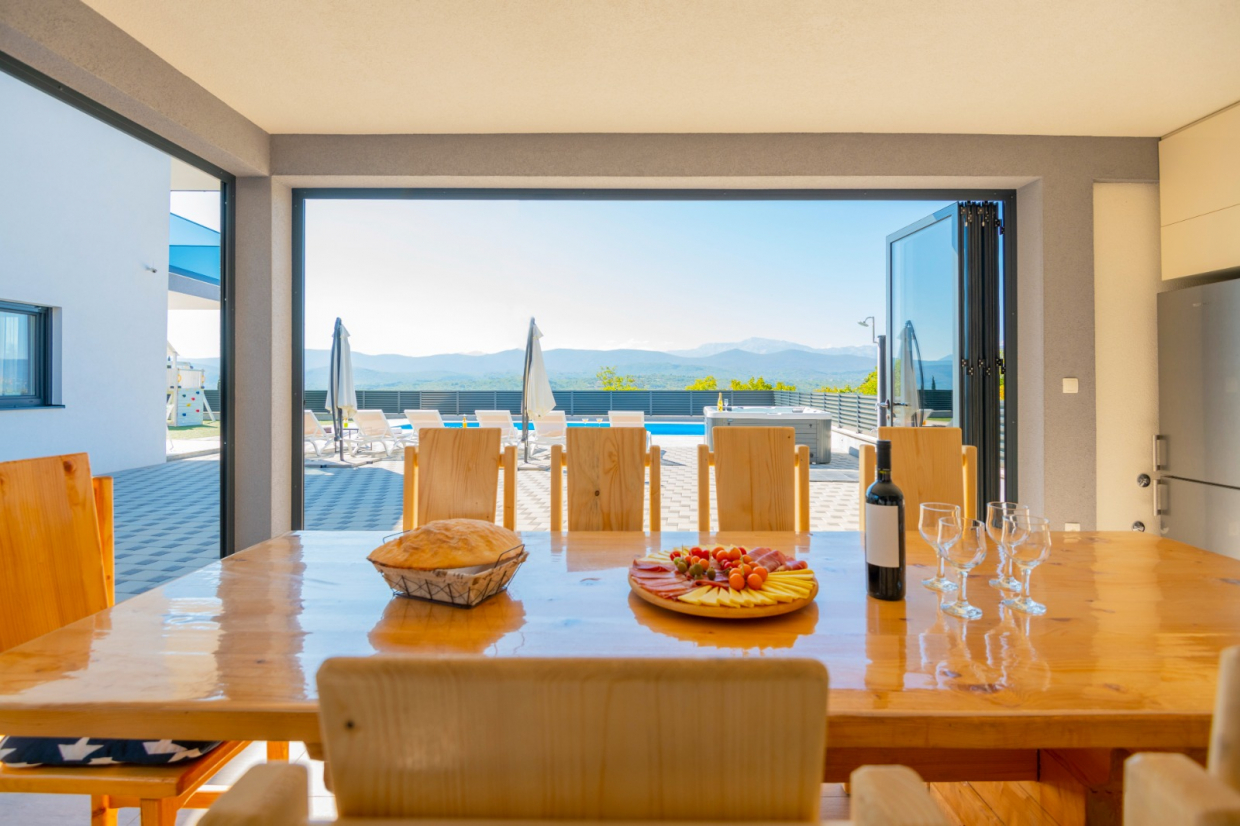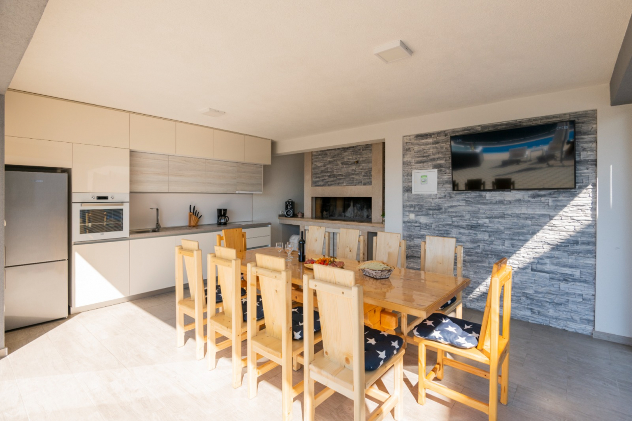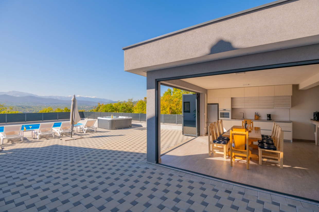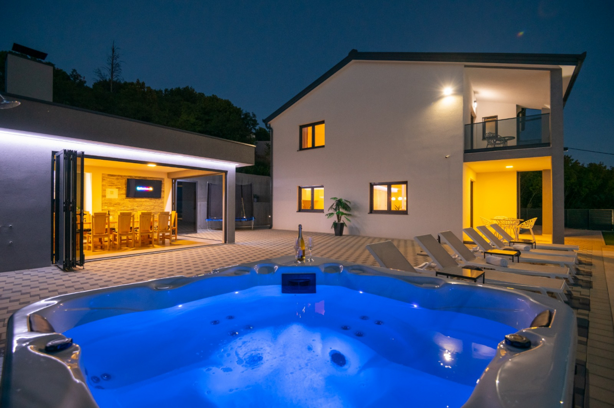 På terrassen kan du nyde spabadet og spise udendørs med udekøkkenet – perfekt til sommersammenkomster med familie og venner!