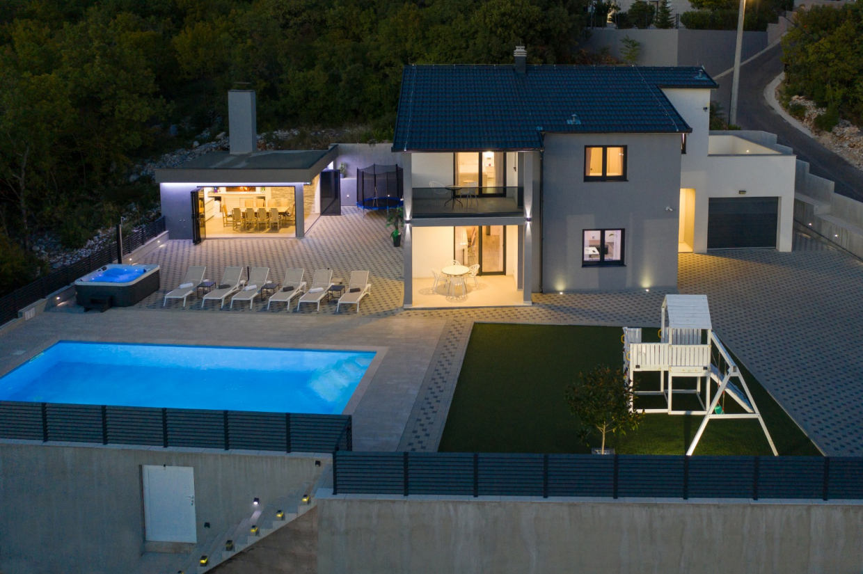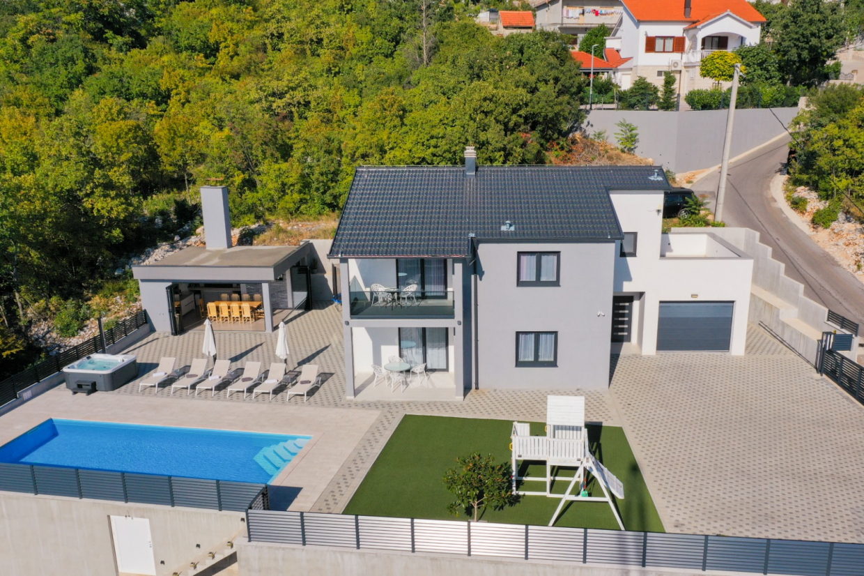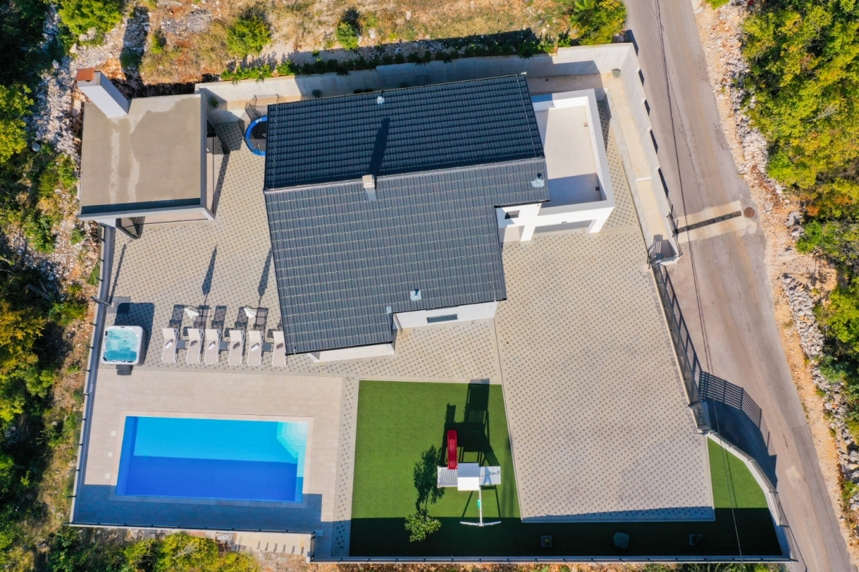 Denne toetagers villa med cirka 10 værelser, bygget i 2019, søger en ny ejer i Imotski!