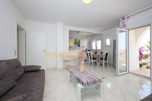 Den moderne 66,15 m² stuelejlighed med have ligger 150 m fra havet og centrum af Njivice. Det ligger i et rækkehus...