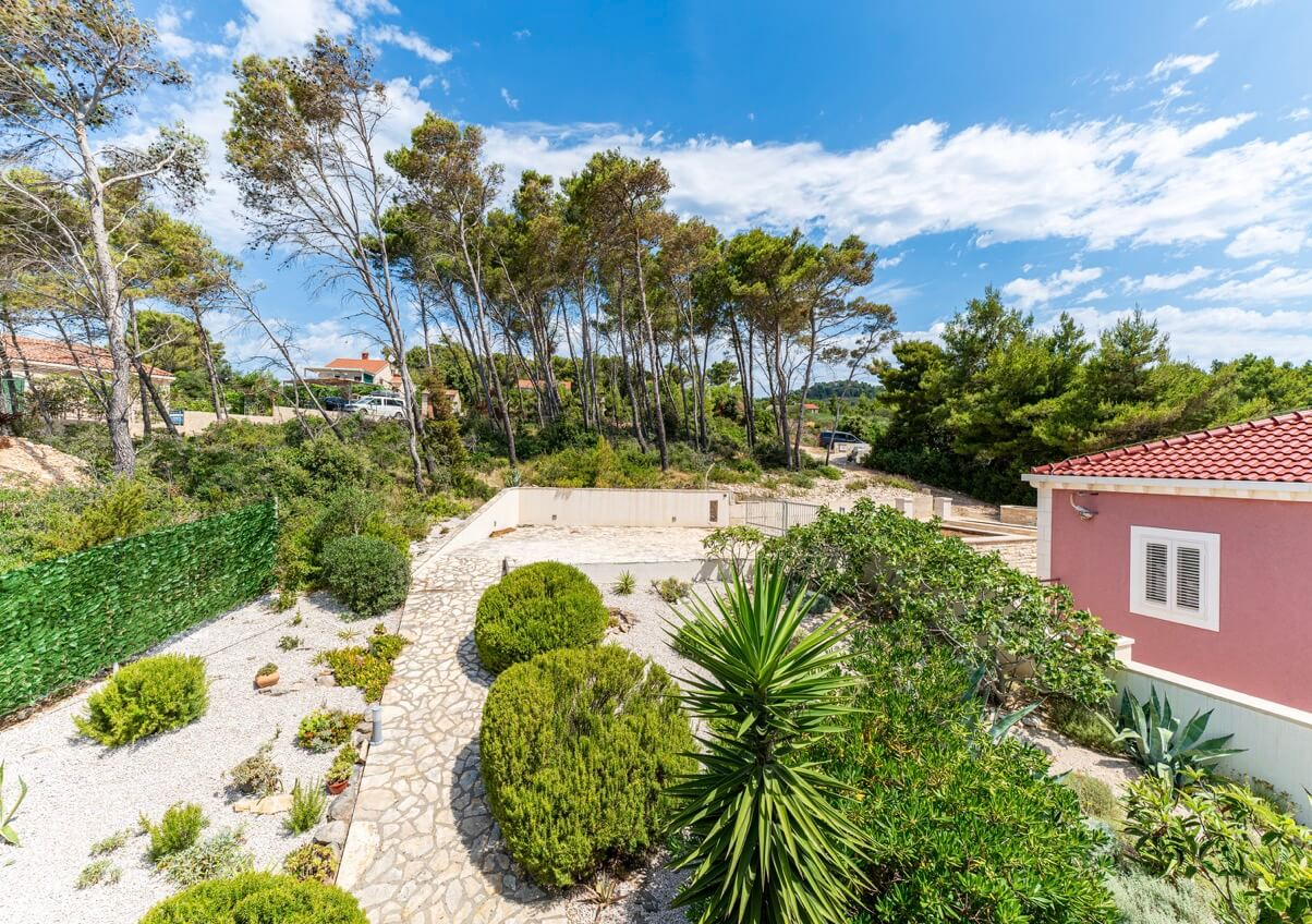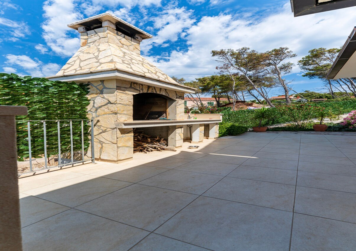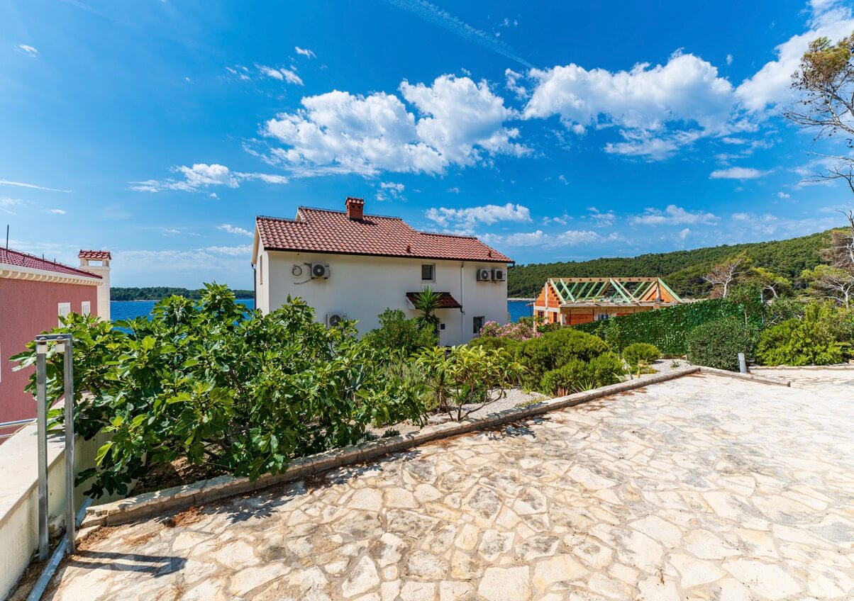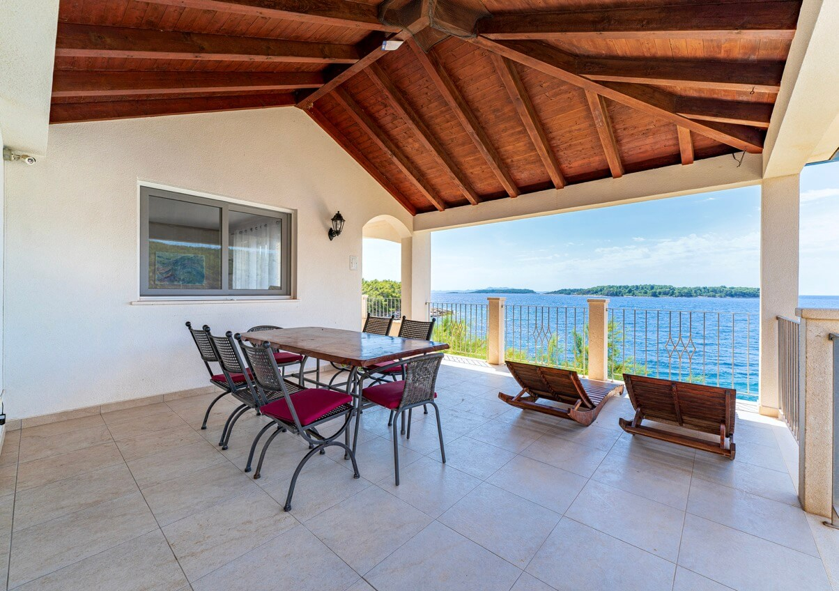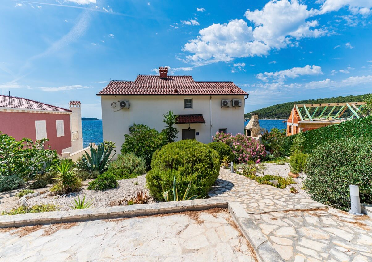 Interiøret består af fire soveværelser og fire badeværelser, hvilket skaber et lyst og luftigt rum med høje, hvide lofter, der oversvømmer interiøret med naturligt lys. Huset kan prale af en moderne, men diskret traditionel stil, der perfekt indfanger Korčulas sande ånd. Den hvide stenkonstruktion tilføjer et strejf af luksus og afspejler øens traditionelle karakter. Huset er fremstillet af dette tidløse naturmateriale og vil helt sikkert forblive elegant og funktionelt i mange år fremover. Udenfor tilbyder en stor, indbydende swimmingpool og en komfortabel terrasse en betagende udsigt over havet og de omkringliggende øer. Huset ligger bogstaveligt talt på stranden, så du kan slappe af på terrassen og føle, at du svæver over vandet. Under den overdækkede pergola, komplet med en stengrill, kan I være vært for adskillige sammenkomster og fuldt ud nyde disse storslåede omgivelser sammen. Der er også en lille, men charmerende have med lokal vegetation, der får hele stedet til at se farverigt og levende ud! Huset har også et billardrum og selvfølgelig privat parkering.
