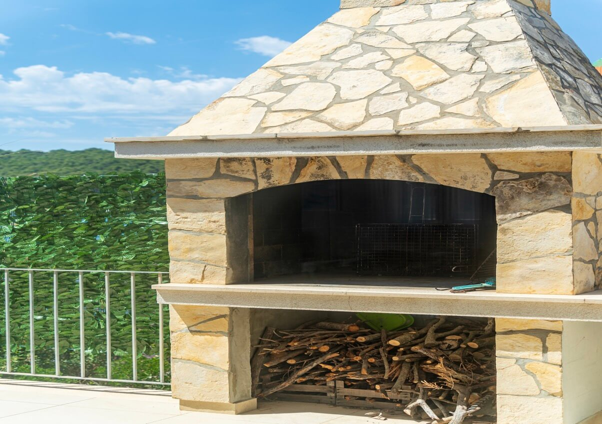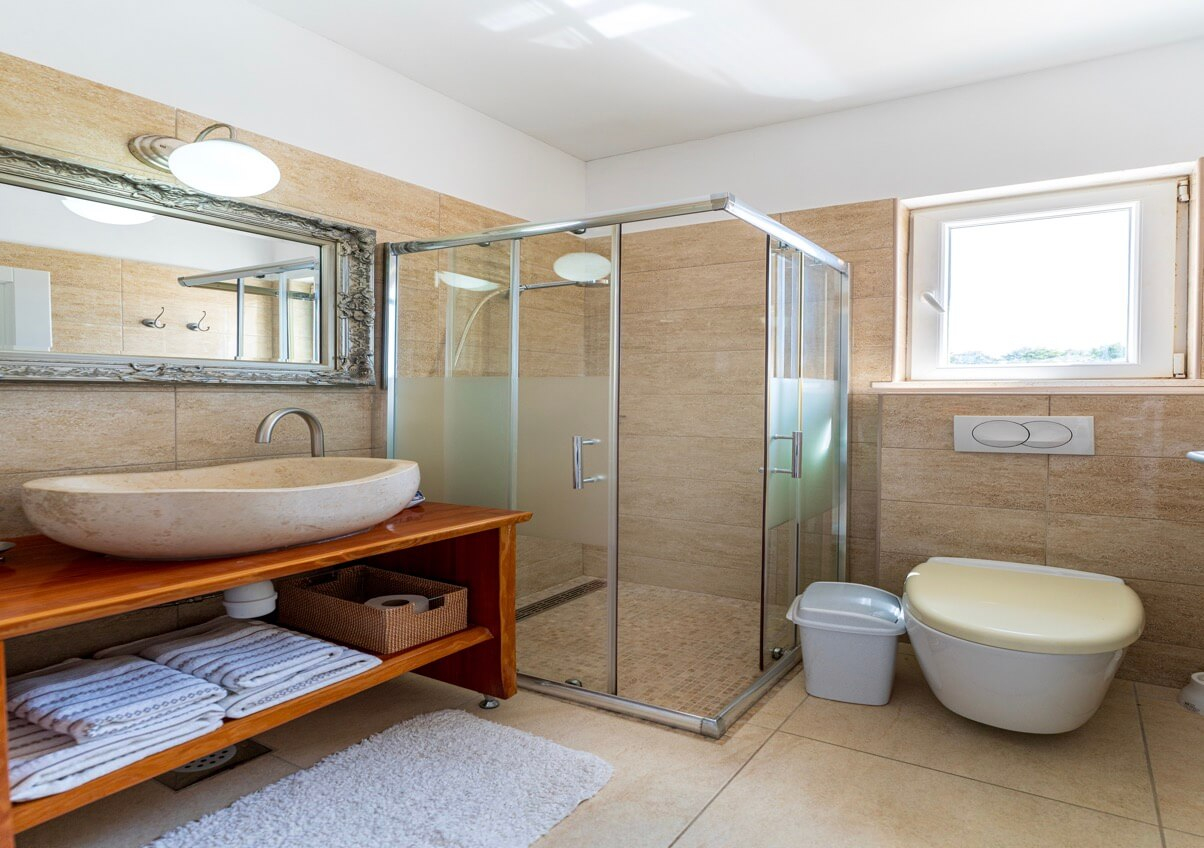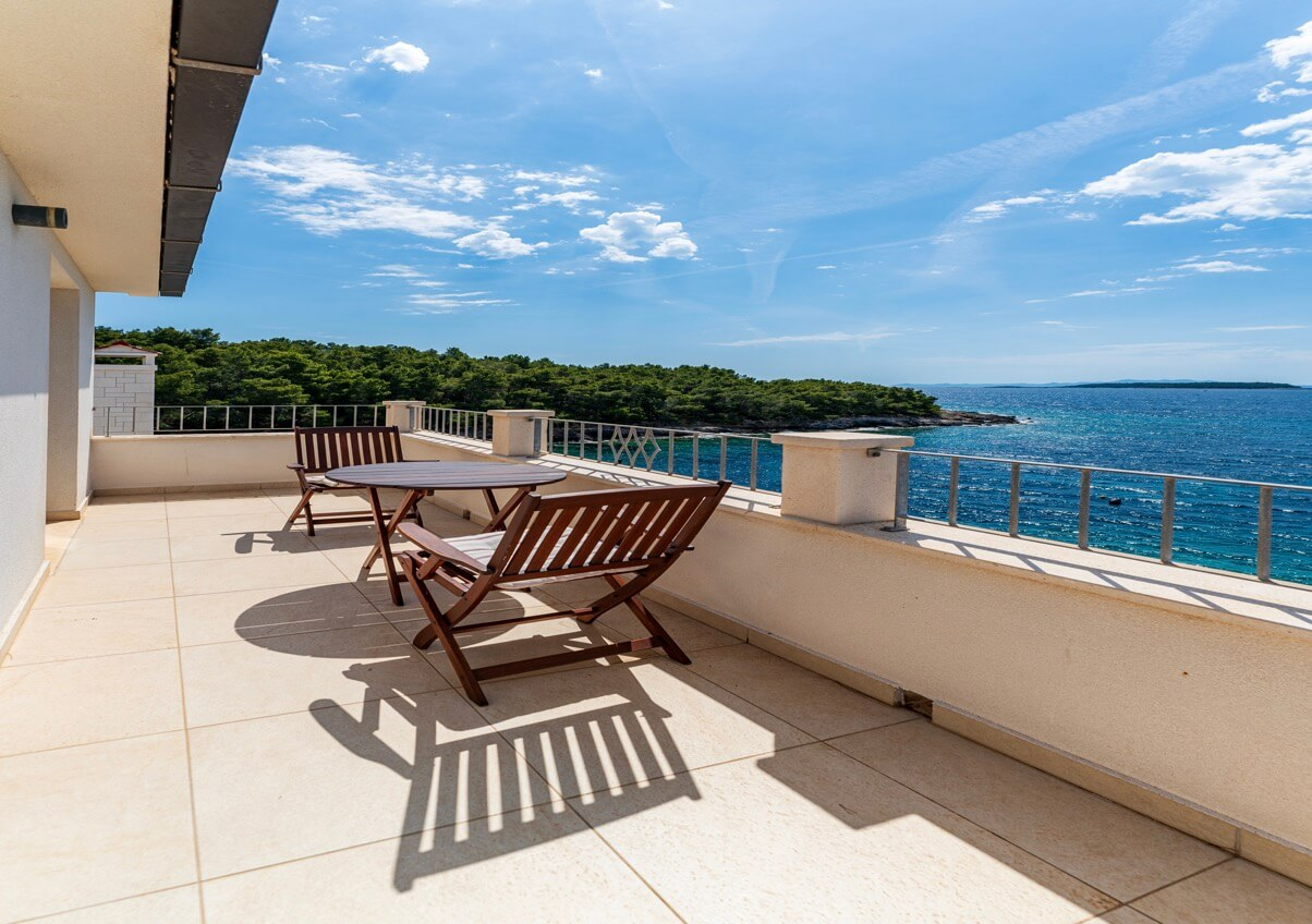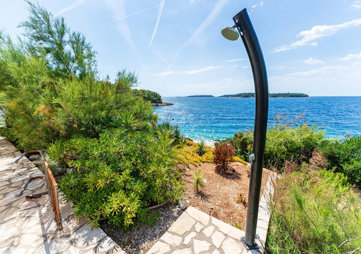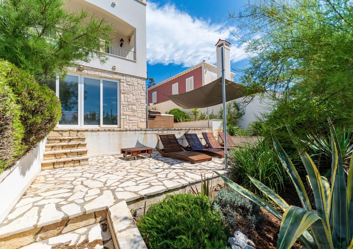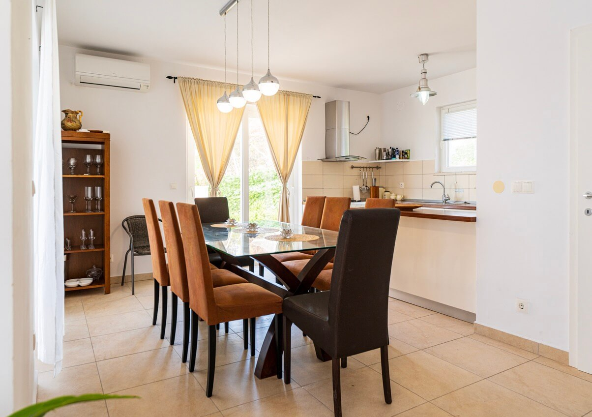 Interiøret består af fire soveværelser og fire badeværelser, hvilket skaber et lyst og luftigt rum med høje, hvide lofter, der oversvømmer interiøret med naturligt lys. Huset kan prale af en moderne, men diskret traditionel stil, der perfekt indfanger Korčulas sande ånd. Den hvide stenkonstruktion tilføjer et strejf af luksus og afspejler øens traditionelle karakter. Huset er fremstillet af dette tidløse naturmateriale og vil helt sikkert forblive elegant og funktionelt i mange år fremover. Udenfor tilbyder en stor, indbydende swimmingpool og en komfortabel terrasse en betagende udsigt over havet og de omkringliggende øer. Huset ligger bogstaveligt talt på stranden, så du kan slappe af på terrassen og føle, at du svæver over vandet. Under den overdækkede pergola, komplet med en stengrill, kan I være vært for adskillige sammenkomster og fuldt ud nyde disse storslåede omgivelser sammen. Der er også en lille, men charmerende have med lokal vegetation, der får hele stedet til at se farverigt og levende ud! Huset har også et billardrum og selvfølgelig privat parkering.