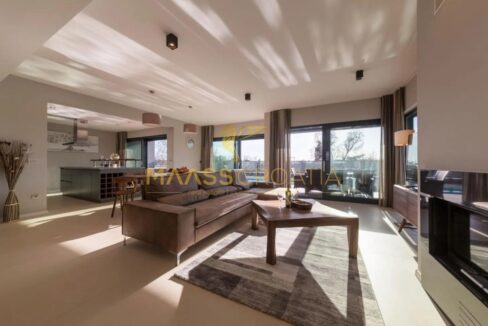 Villaen kan prale af 117 m² boligareal og består af tre rummelige soveværelser, hver med eget badeværelse, hvilket garanterer maksimal komfort og privatliv for alle gæster. Stueetagen har en åben opholdsstue med en tilstødende spisestue og et moderne, fuldt udstyret køkken, ideelt til underholdning, samt et separat toilet.