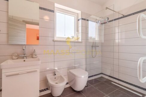 Den består af stueetage og første sal – i stueetagen findes en rummelig stue, køkken, spisestue, et soveværelse med badeværelse samt et gæstetoilet. På første sal er der tre soveværelser, hver med eget badeværelse og en terrasse med havudsigt.