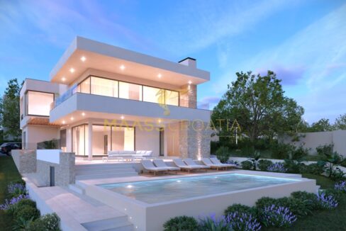 I Lozovac ligger der en enebolig med moderne arkitektur og funktionel rumfordeling med swimmingpool og et samlet...